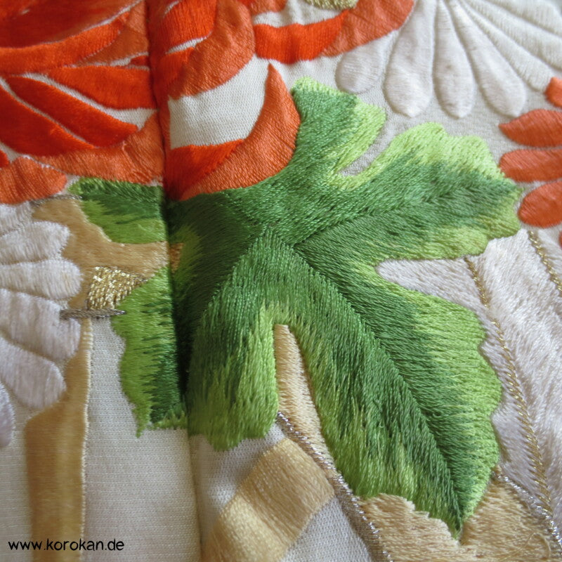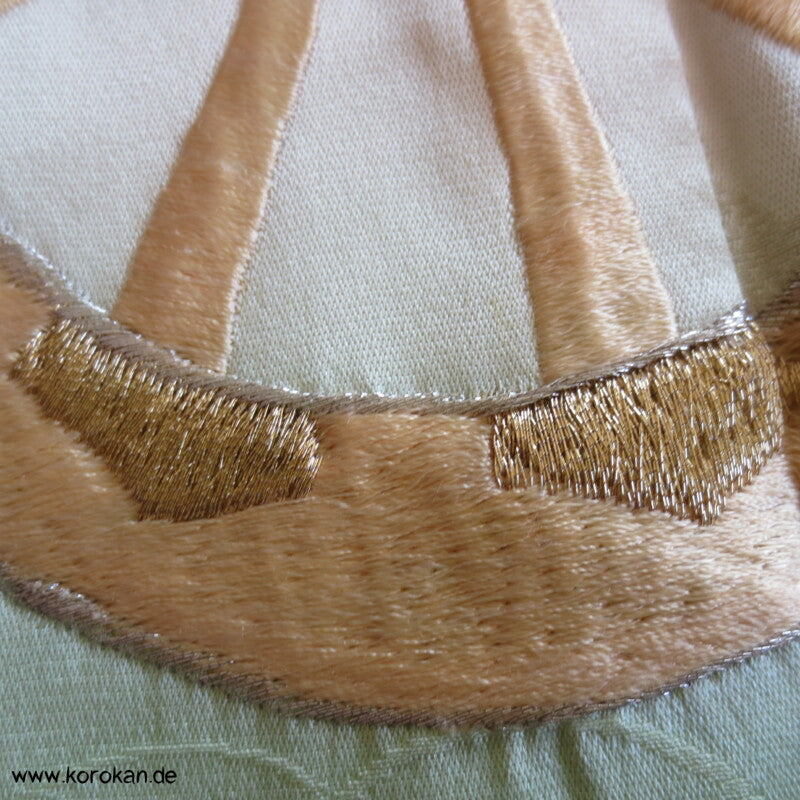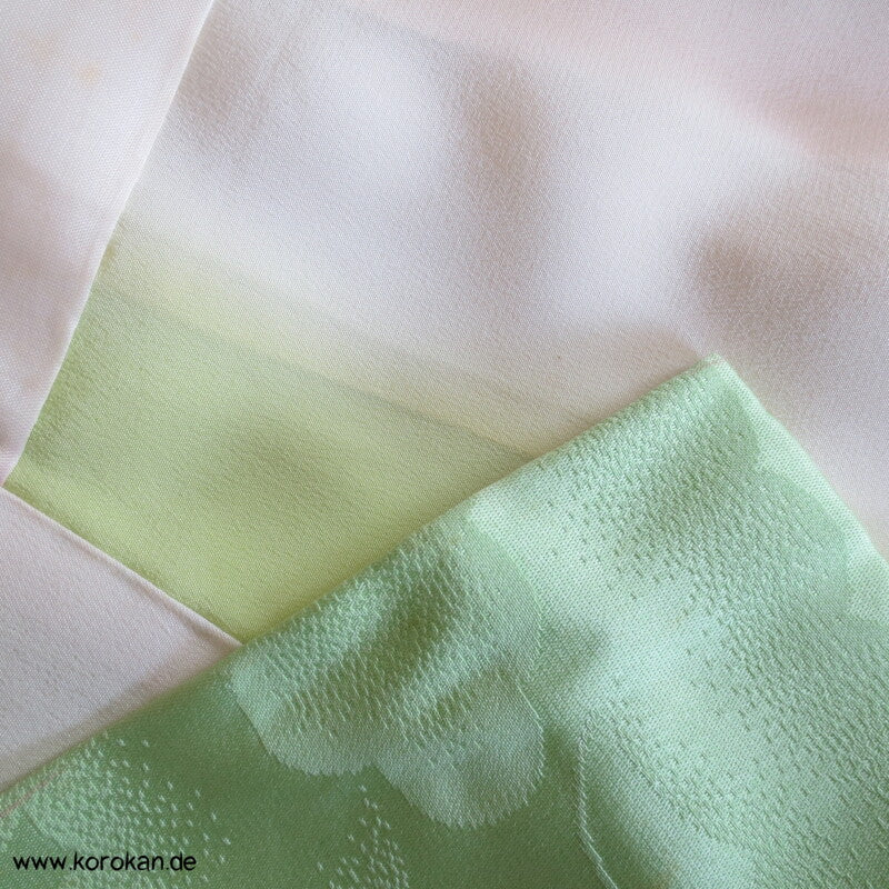 Oberes Futter helle Seide, unteres Hakkake Seidenfutter mit Bokashi Verlaufsrand.