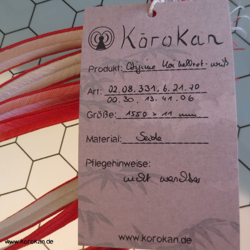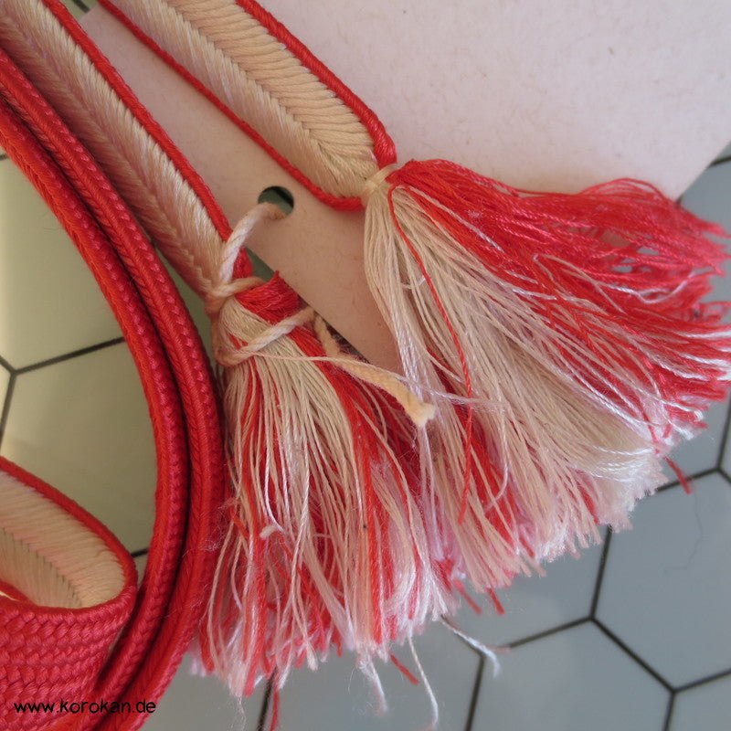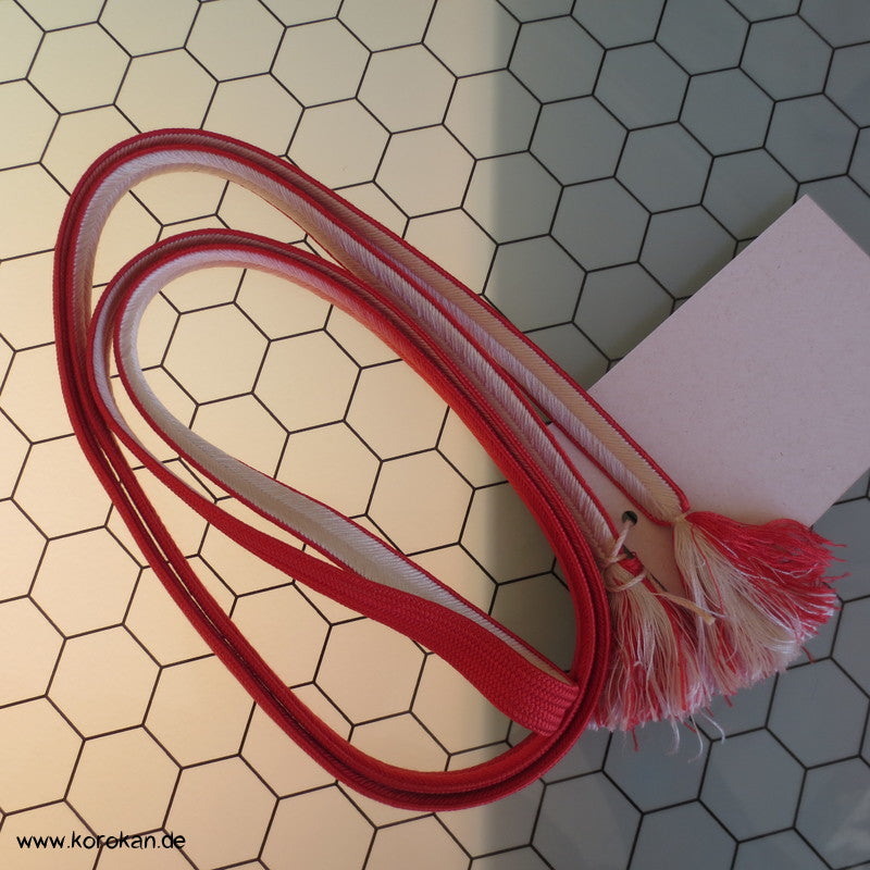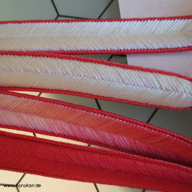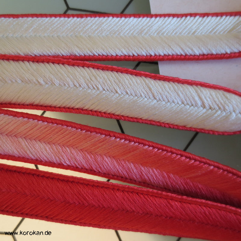 japanischer Flecht Seiden Obijime hellrot weiß Fischgrätenflechtung
