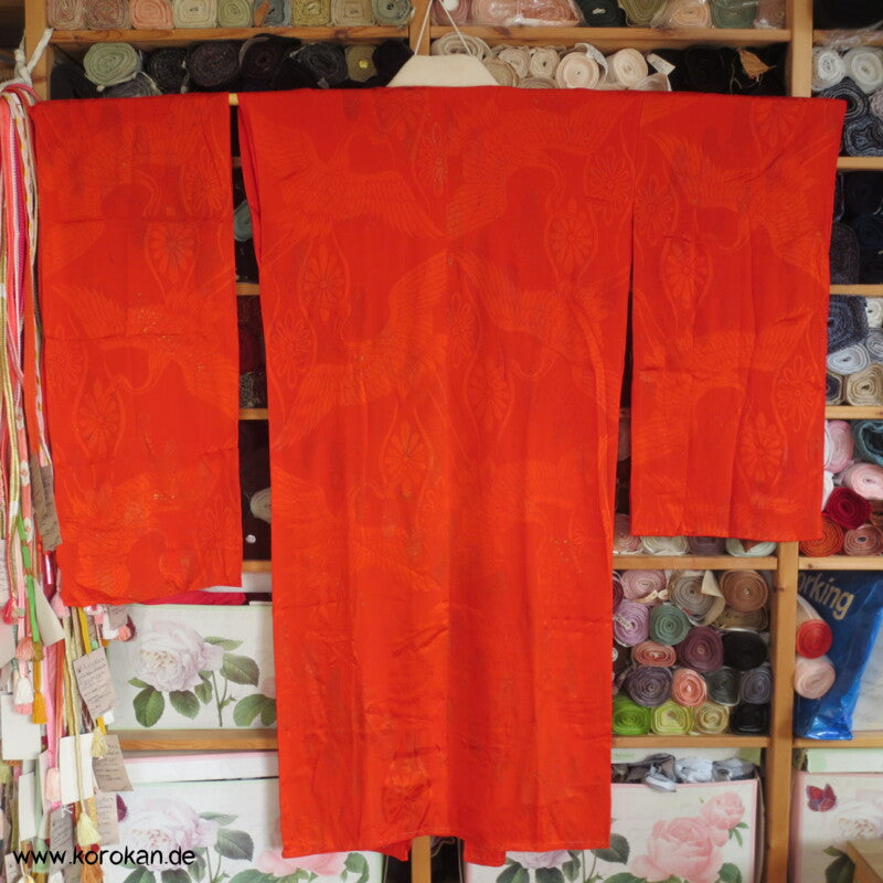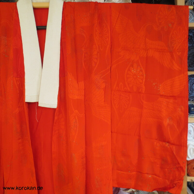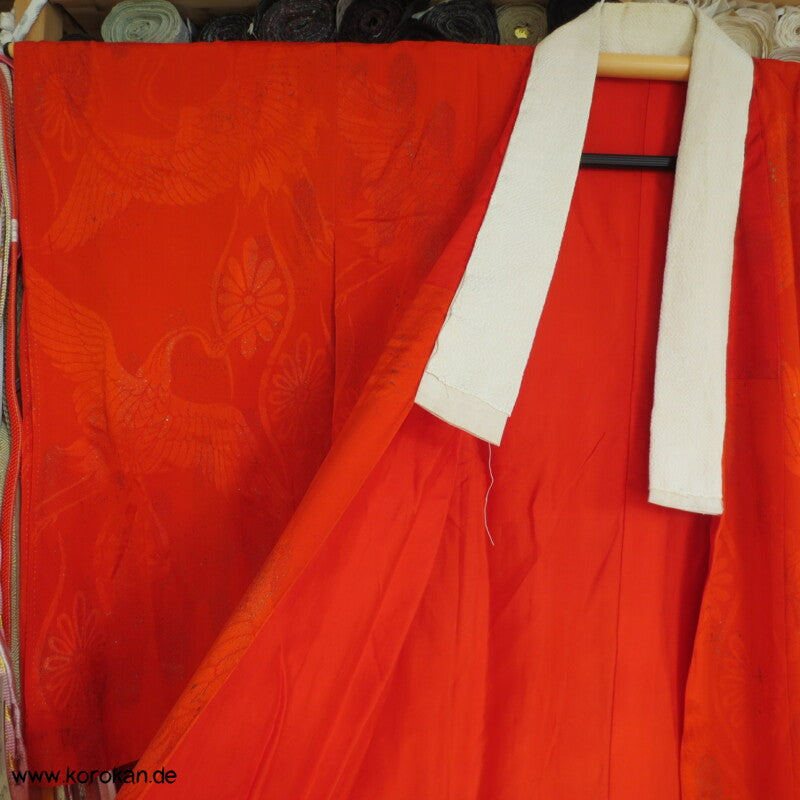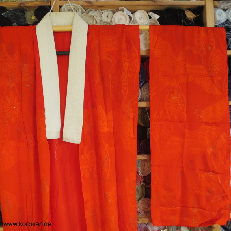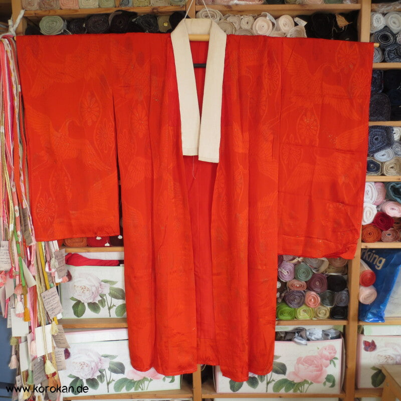 hellrote Kranich Seide, Golddruck Juban , defekt