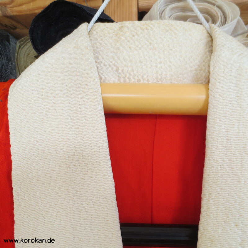 antiker Juban Unter Kimono rote hauchdünne Damast Seide, mit rotem Seidenfutter, hellem Seidenrips Han Eri Kragen