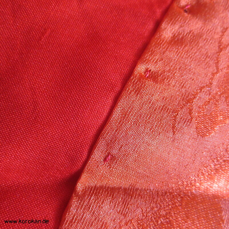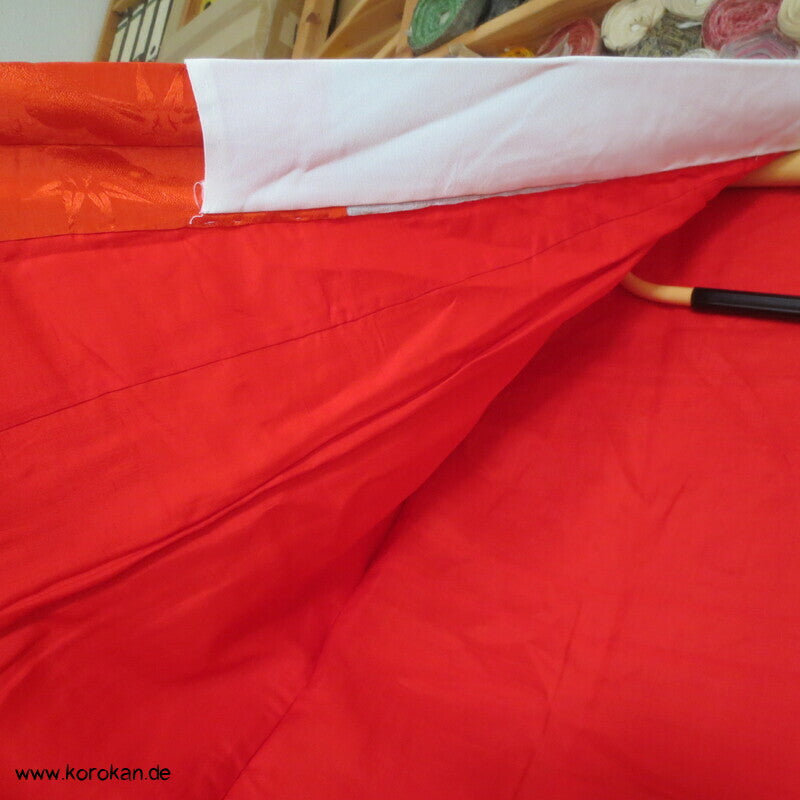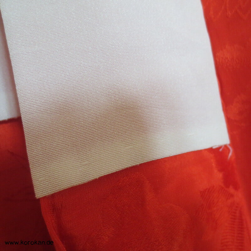 antiker Juban Unter Kimono rote hauchdünne Damast Seide, mit rotem Seidenfutter, hellem Seidenrips Han Eri Kragen