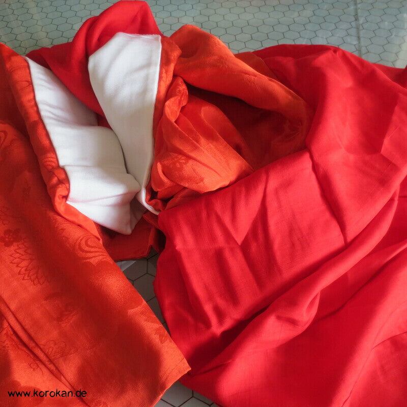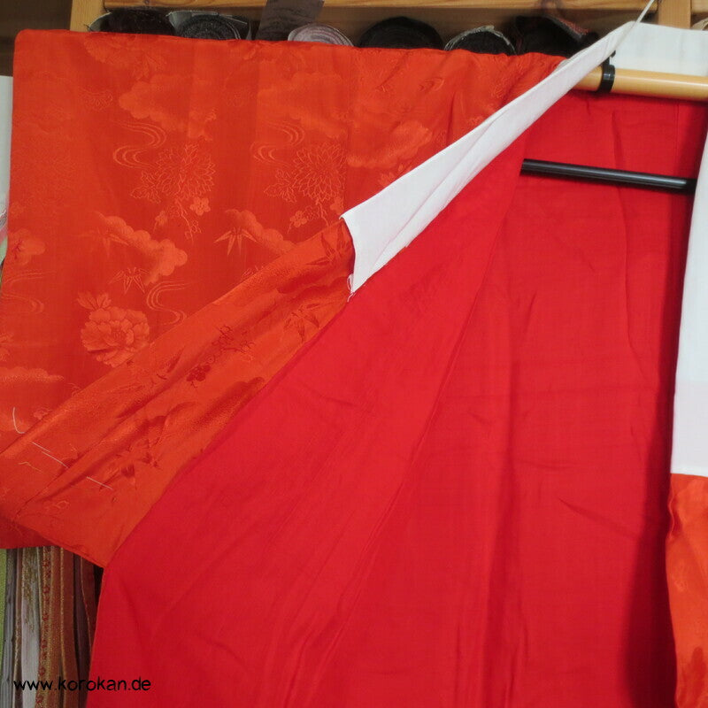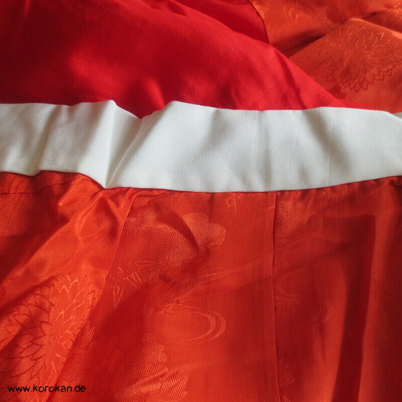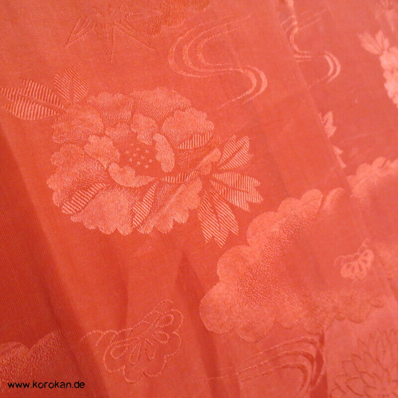 hellrote Rinzu Damast Seide Juban Unterkimono, Shochikubai