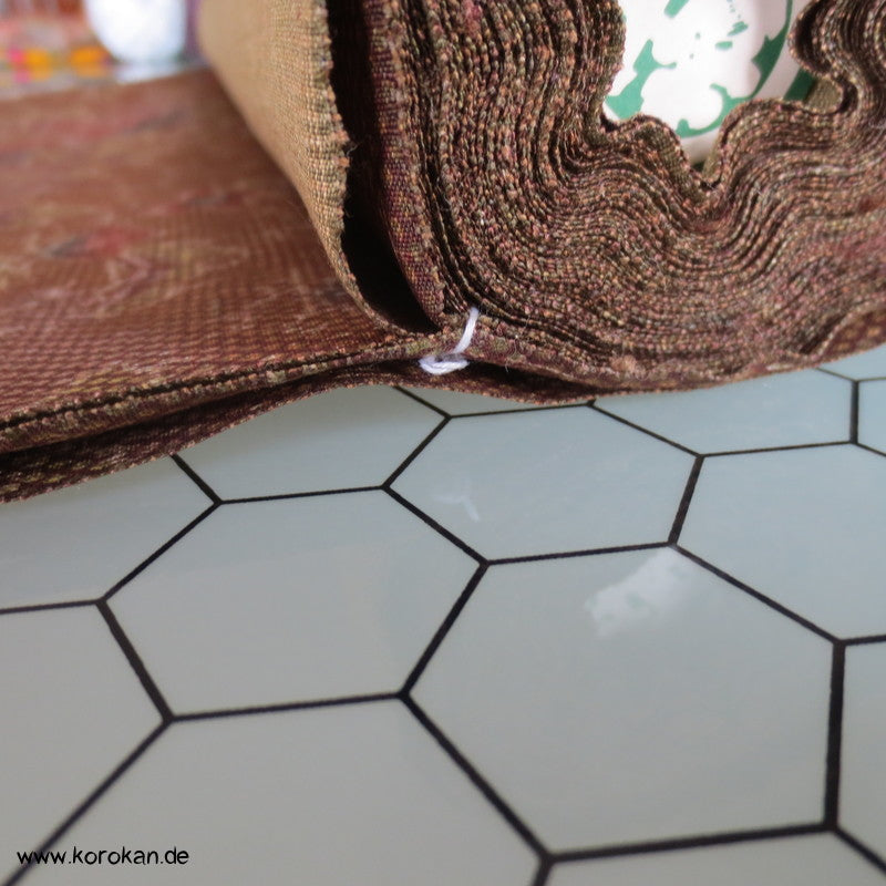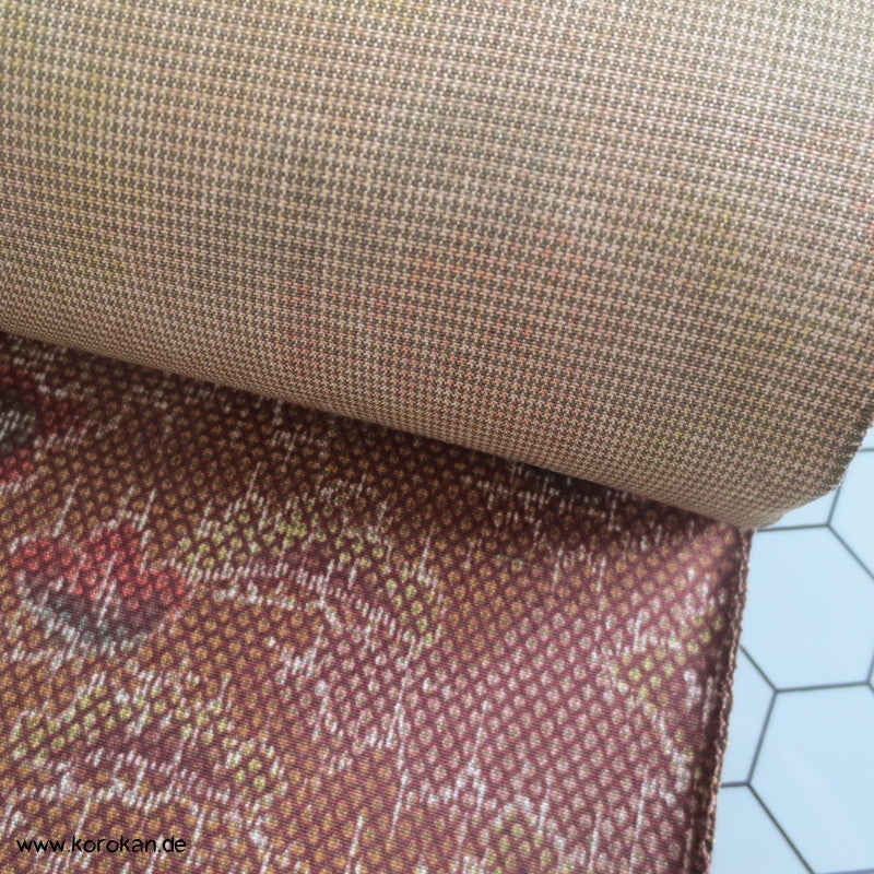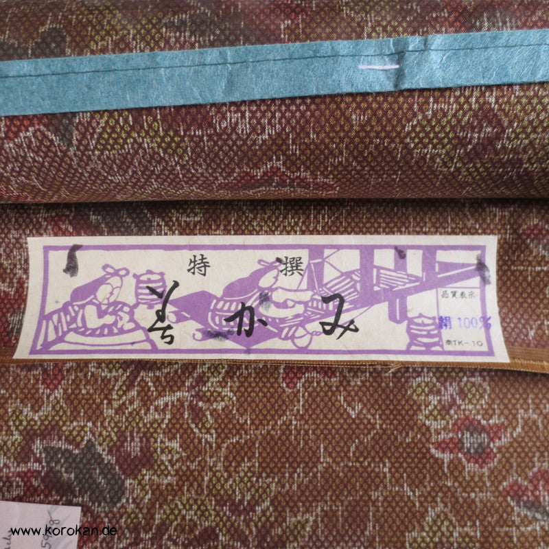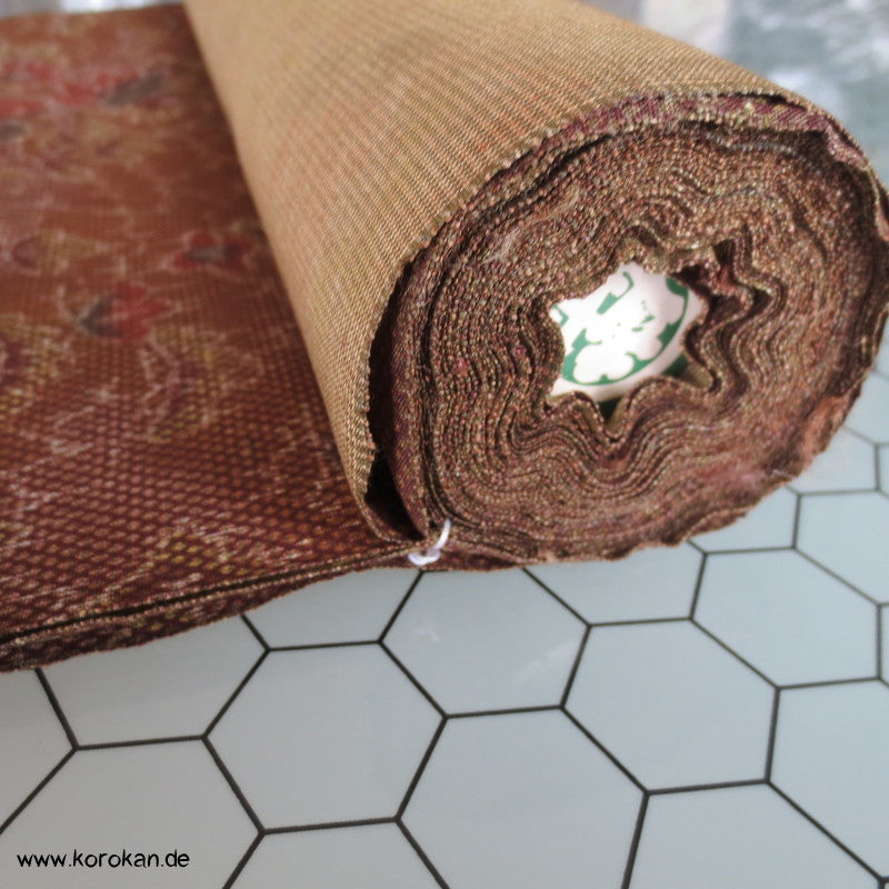 Vintage unbenutzte originalgeheftete Herbst Blumen und Blätter Druck Honan Kimono Seiden Stoffrolle