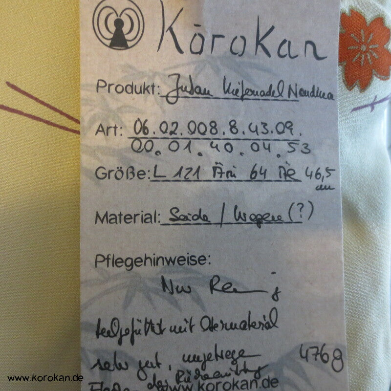 Länge 121 cm, Ärmelrückenbreite 128 cm. Ärmellänge 46,5 cm