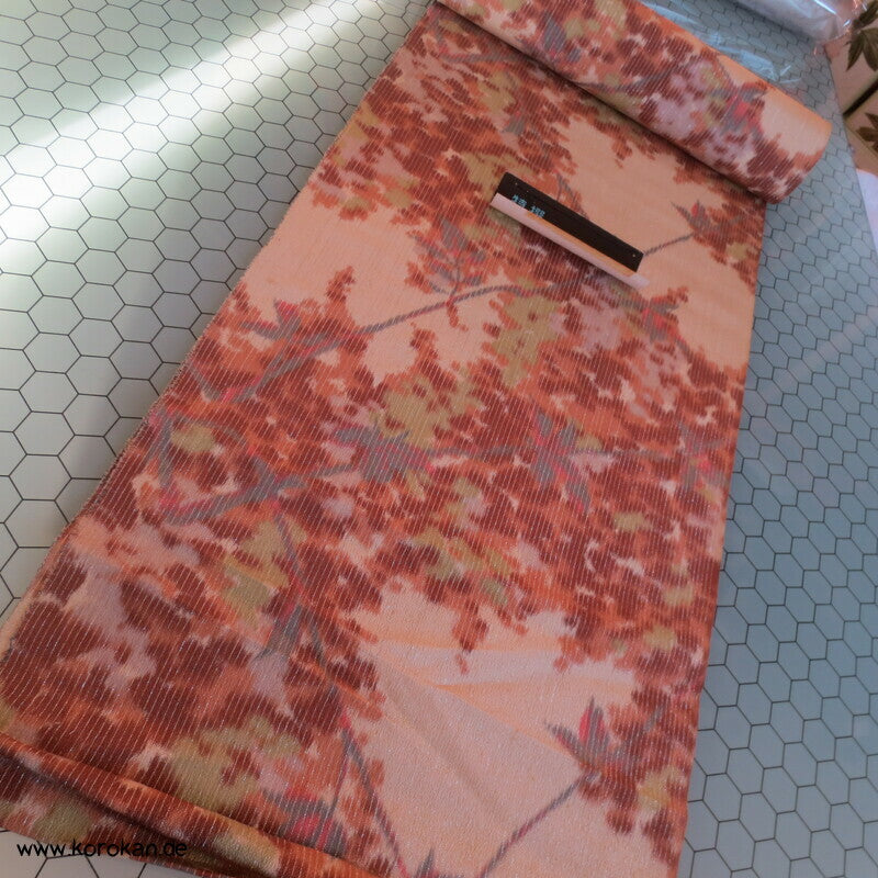Herbstblätterzweige Seide / Rayon / Lurexstreifen Kimono Krepp
