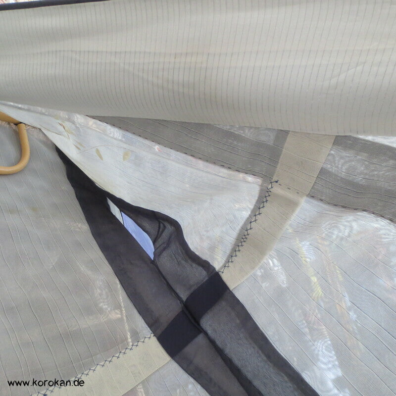 Vintage antiker Homongi Kimono doppellagiges Drehergewebe, aussem mit Durchbrucharbeit, die einige Gräserbögen bildet, innen mit Blüten angedeutet