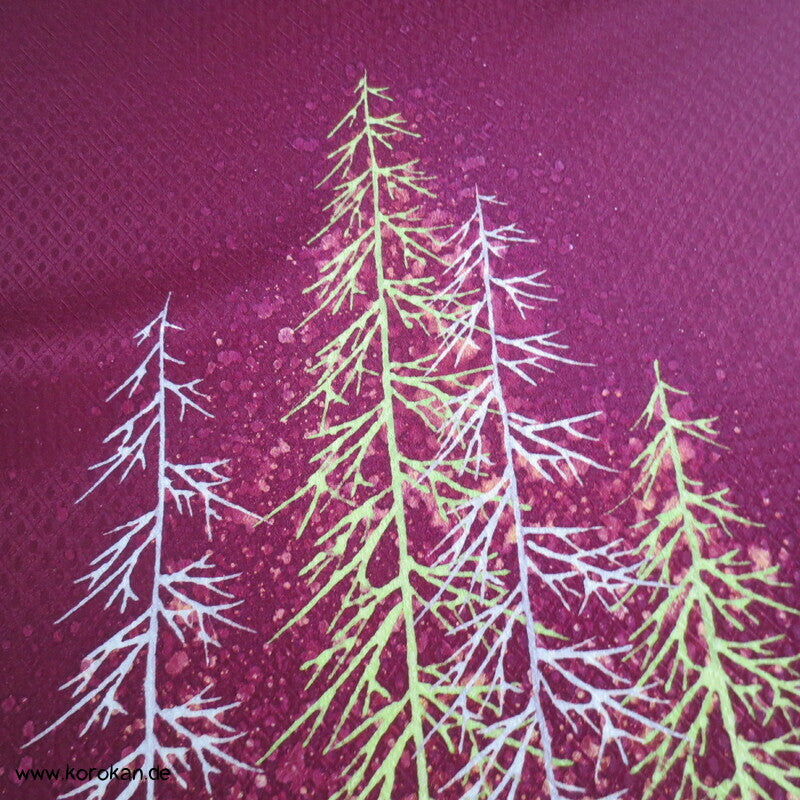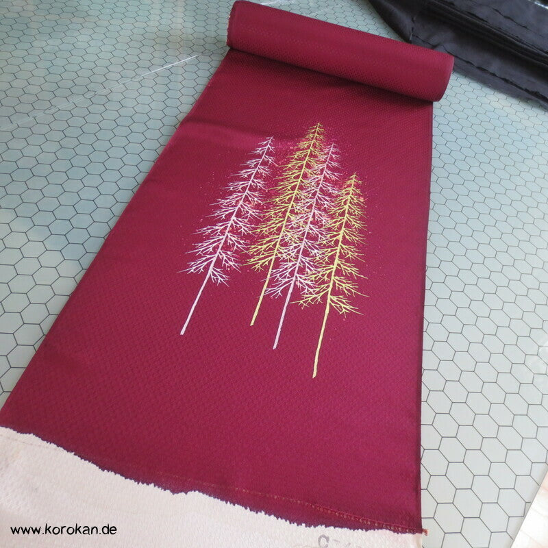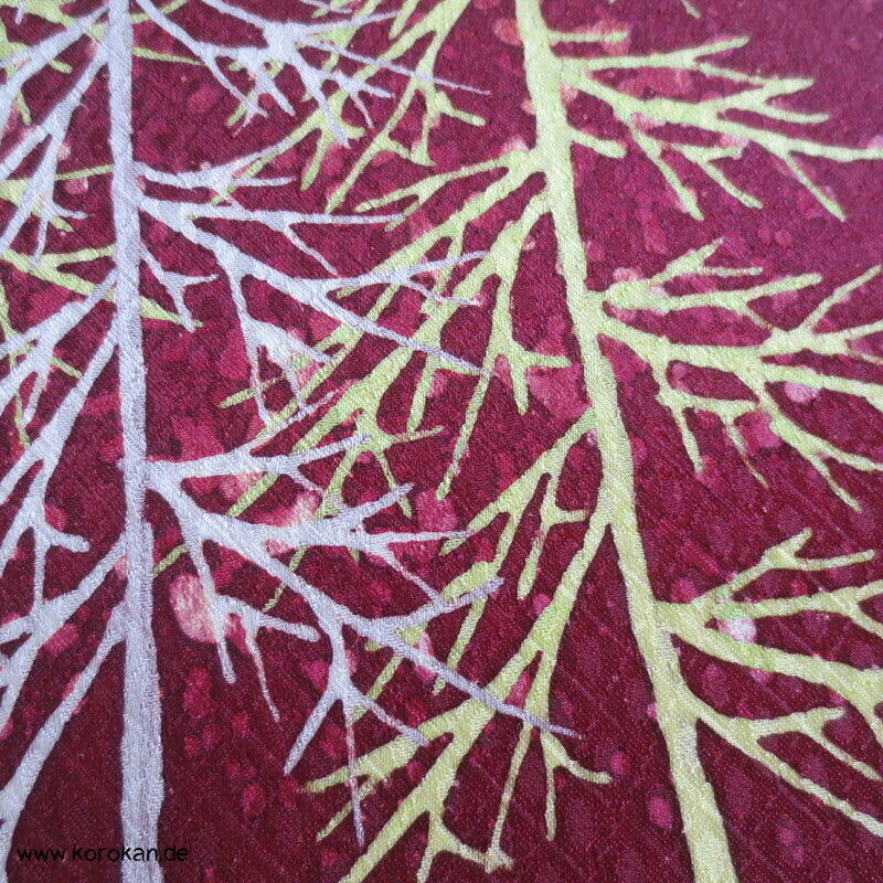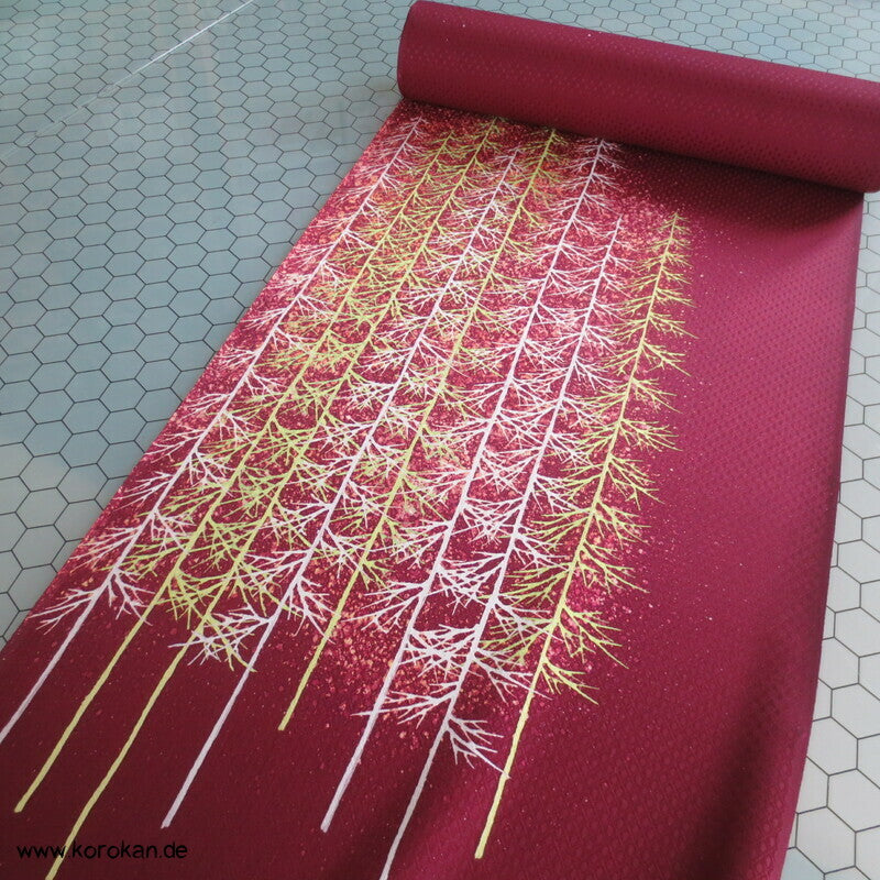 Homongi Kimono Tanmono Stoffrolle abstrakte Bäume auf weinrot