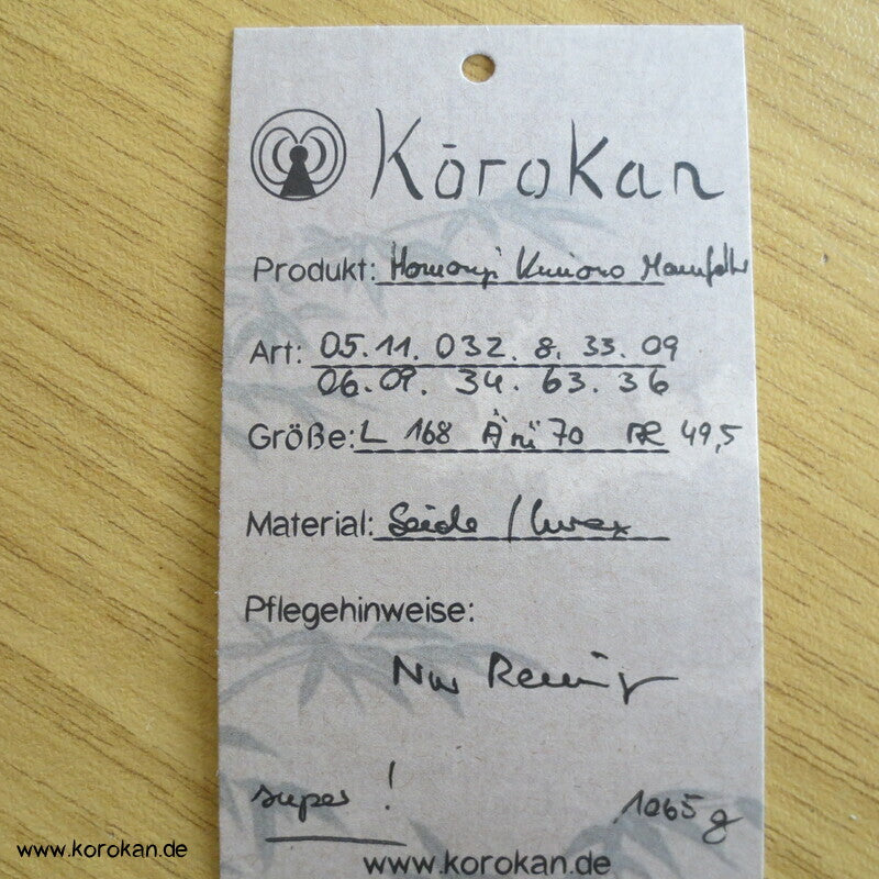 Länge 168 cm, Ärmelrückenbreite 140 cm, Ärmellänge 49,5 cm