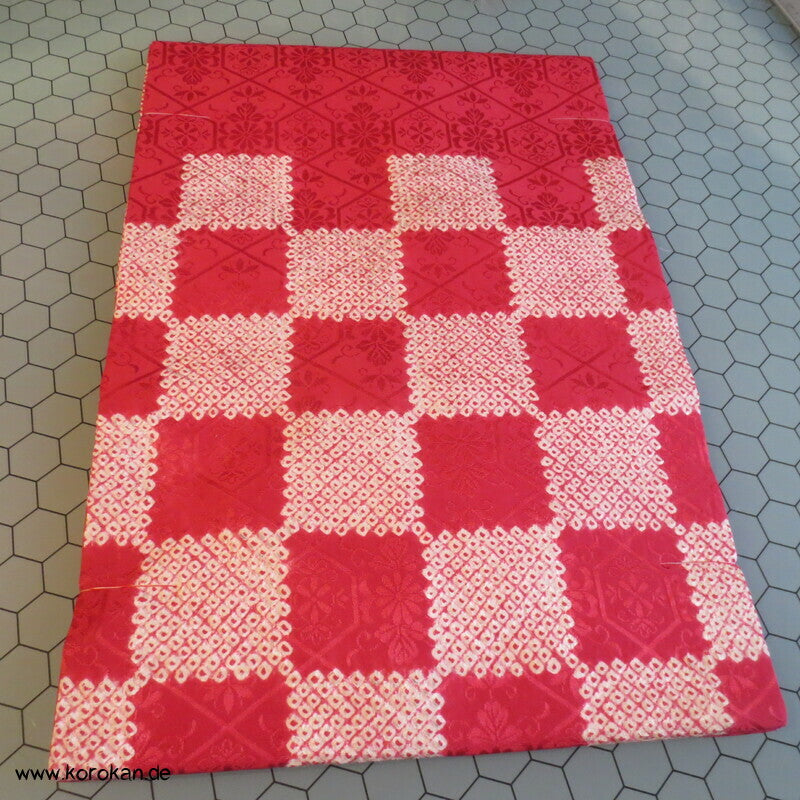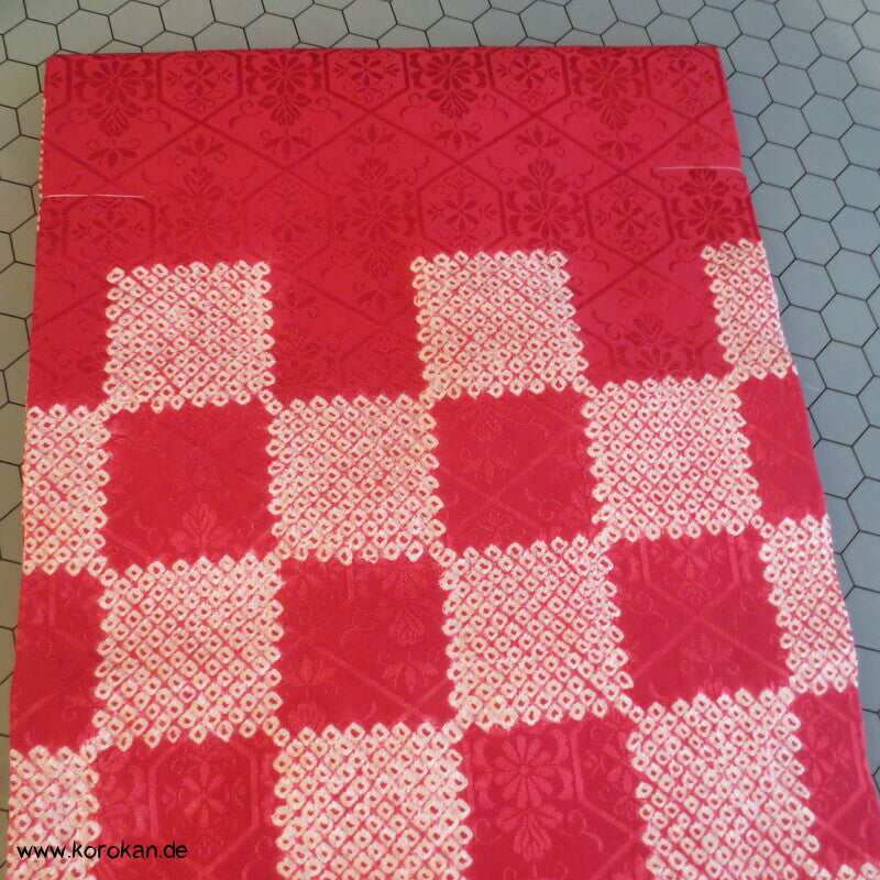 Ichimatsu Schachbrettkaro Shibori Seiden Nagoya Obi, originalgeheftet