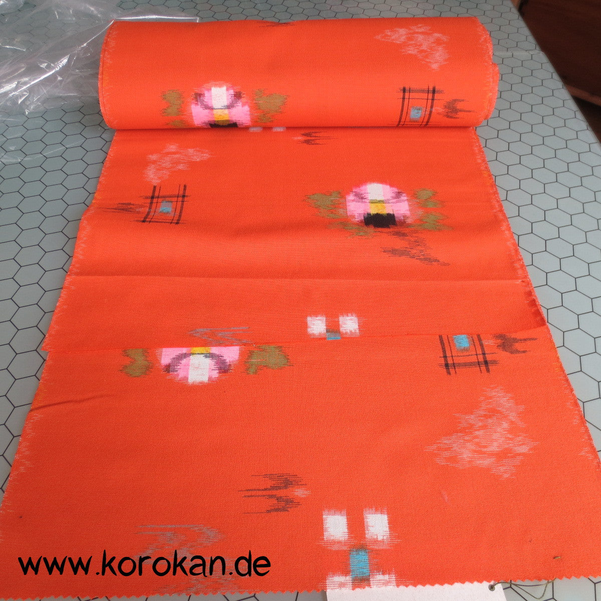 japanische Vintage unbenutzte Stoffrolle Tanmono Wolle Kasuri Karo mit Blumen in orange