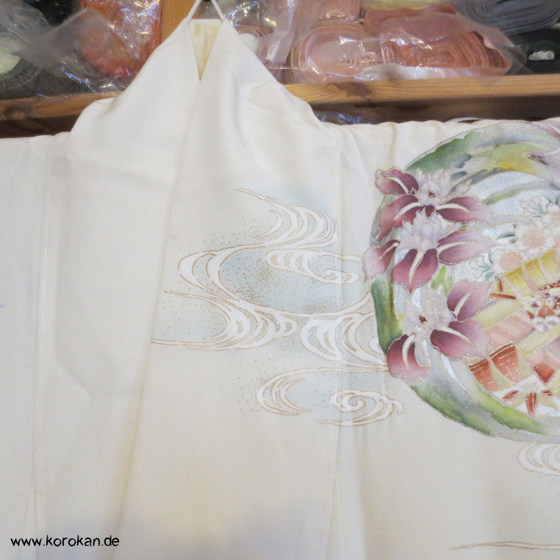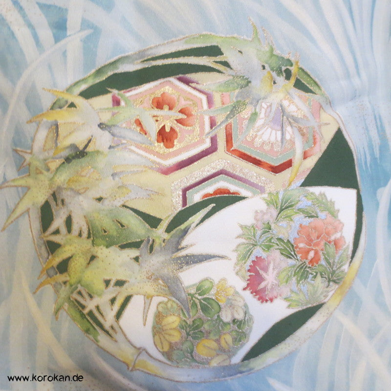 Iris, Golddruck Rondellen Homongi Seiden Kimono
