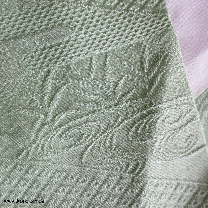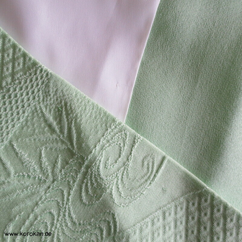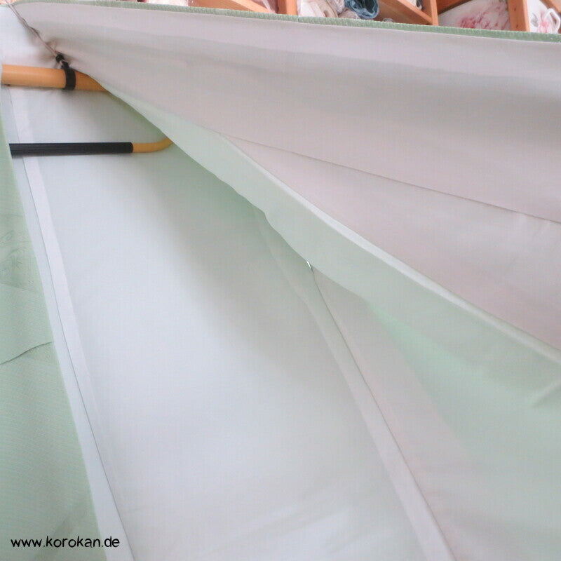 Matzukawabishi Zackenmuster mit internen Hitta, Wellen, Bambus etc.. Mustern, hellem oberen Seidenfutter, unterem Seiden Hakkake jade Seidencrepe. 1 Mon im Nacken, lang