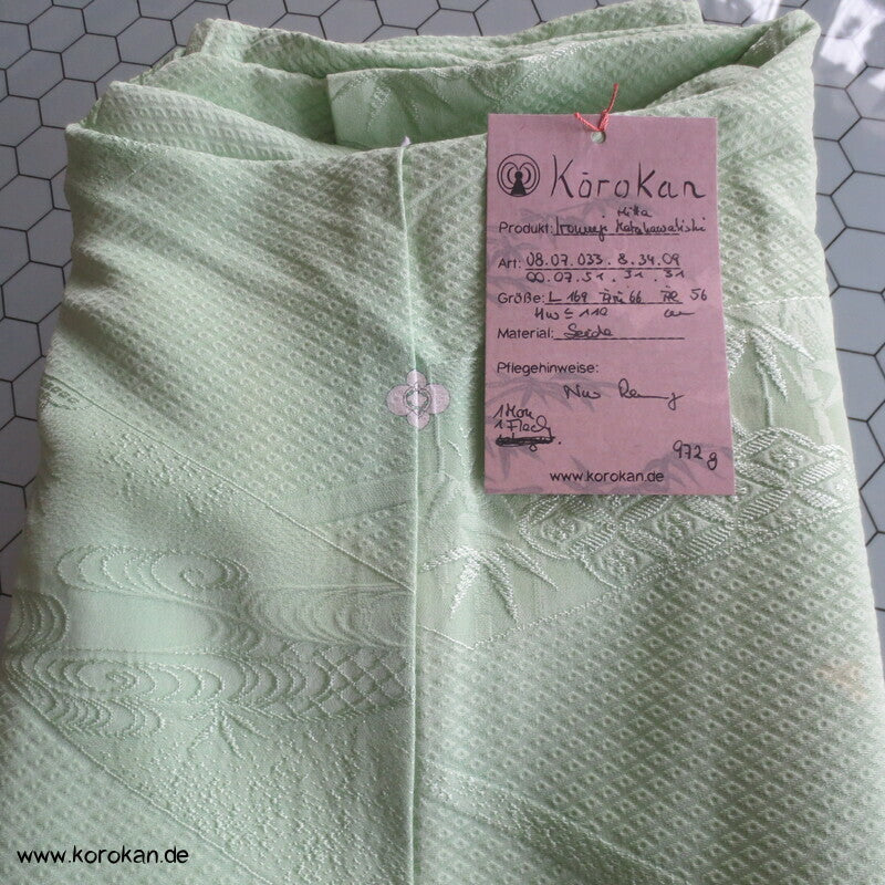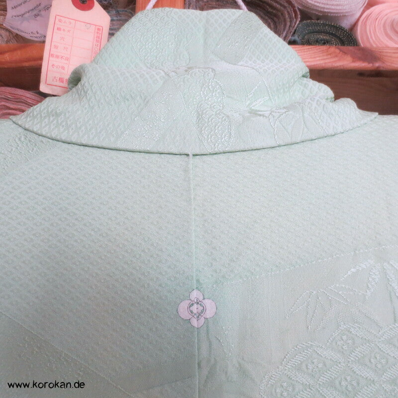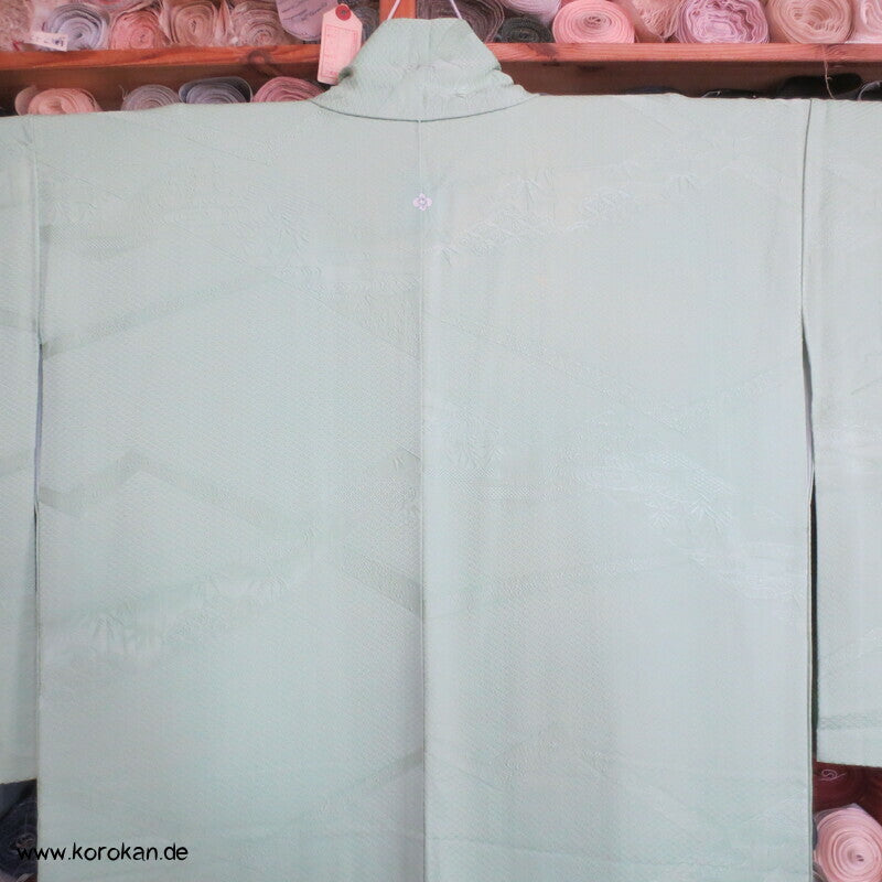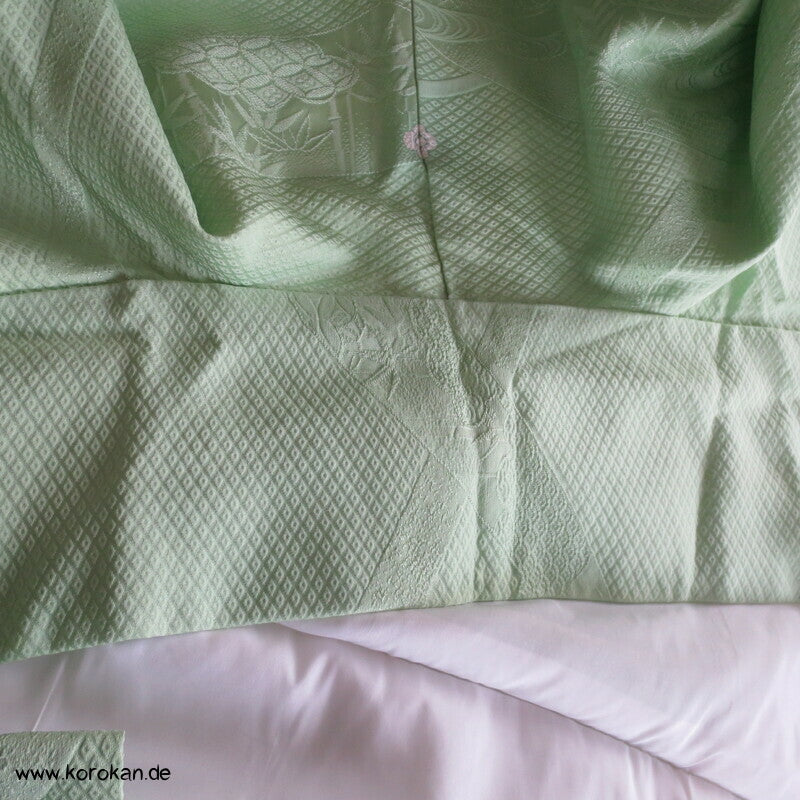 Iromuji Kimono Seidendamast, jade Hitta Matzukawabishi