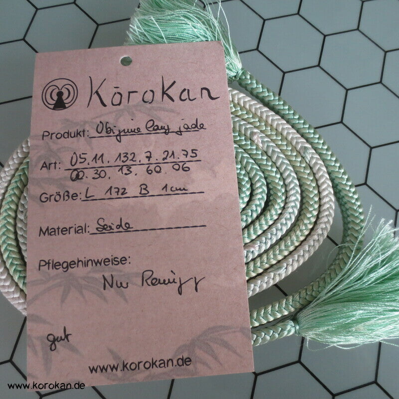 japanischer Flecht Seiden Obijime zartgrünjade weiß Farbverlauf