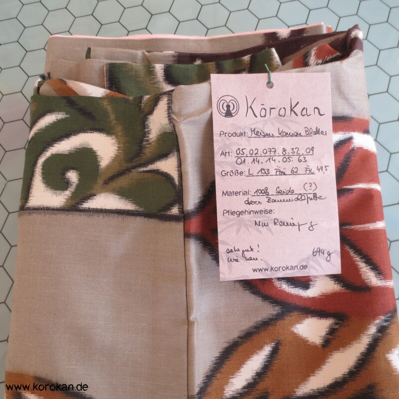 Japan Art Deco Blätter Meisen Seiden Kimono