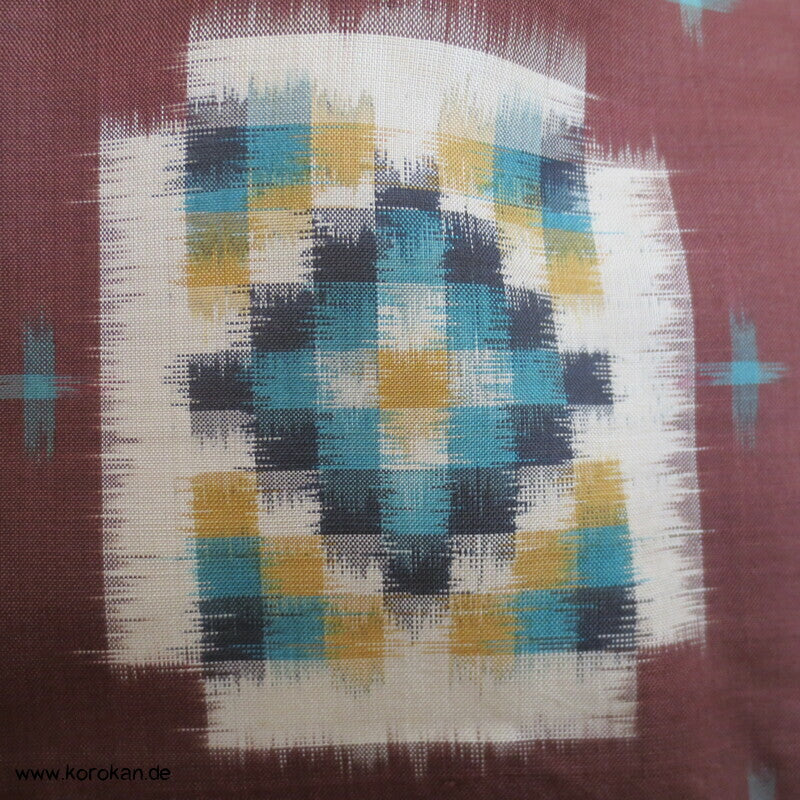 Japan Art Deco Karoblöcke türkis auf umbra Meisen Seiden Kimono
