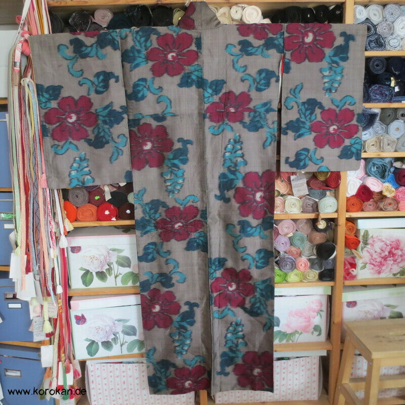 Japan Art Deco Päonien und Arabesken Meisen Seiden Kimono