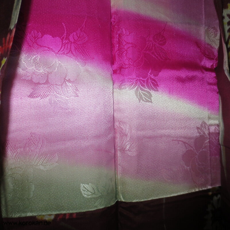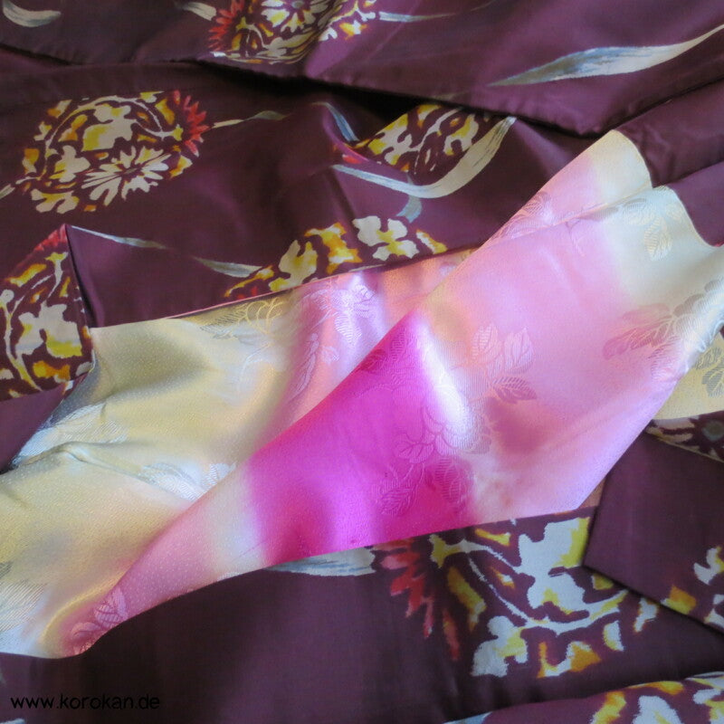 Japan Art Deco weinrot - bunte Meisen Seiden Haori Kimono Jacke