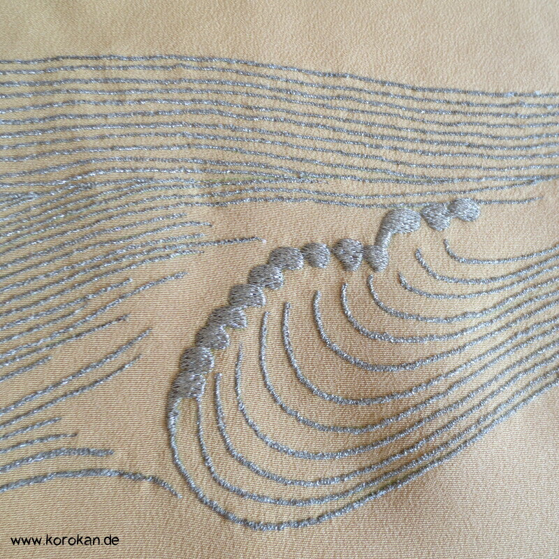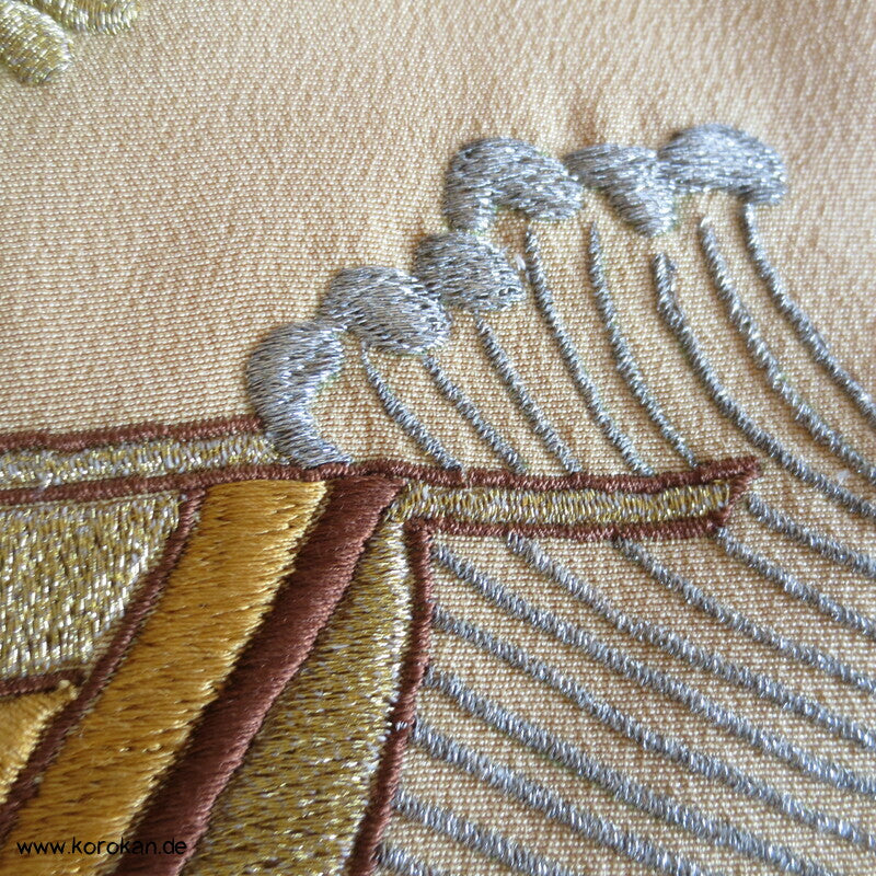 Japan Boote im Schilf Stickerei Irotomesode Seidencrepe Kimono