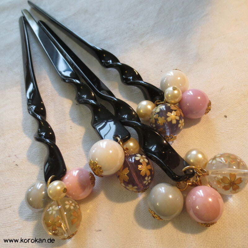Vintage unbenutzter, neuer Haarstab mit eng hängenden Glaskugeln