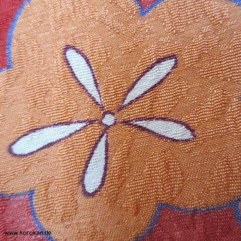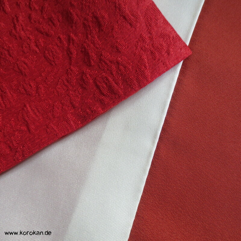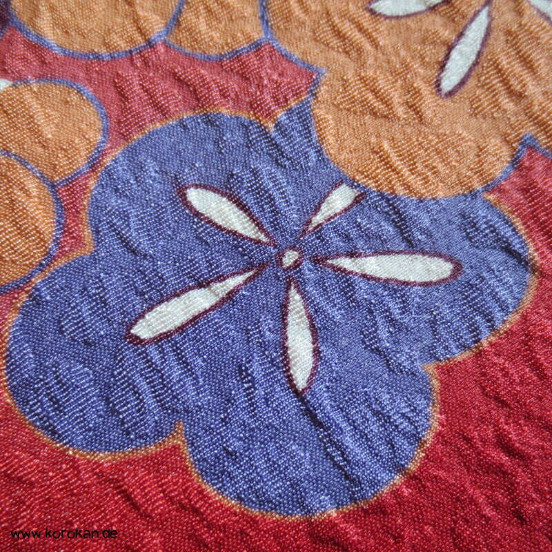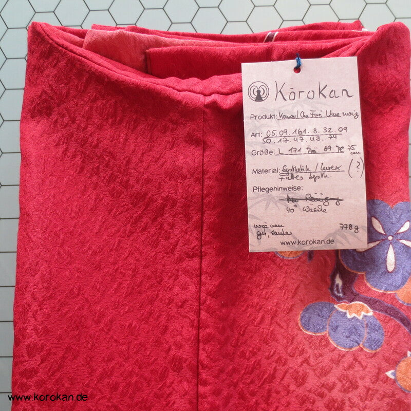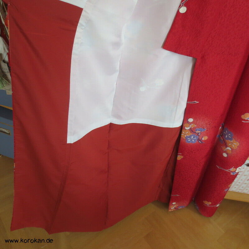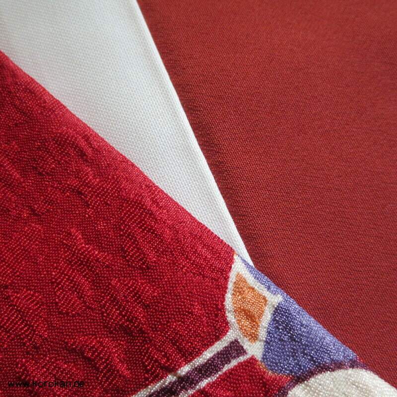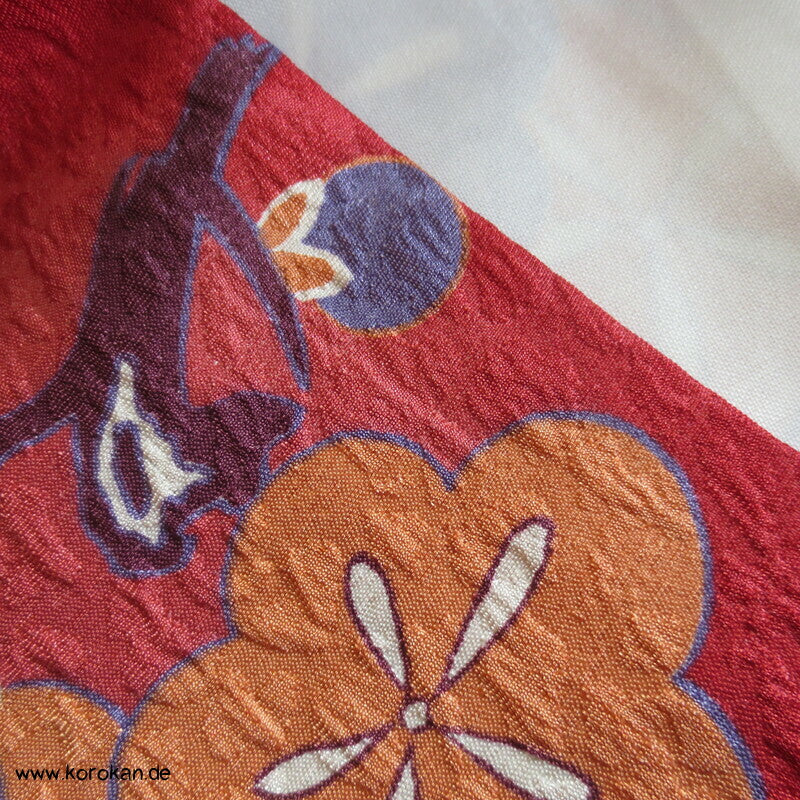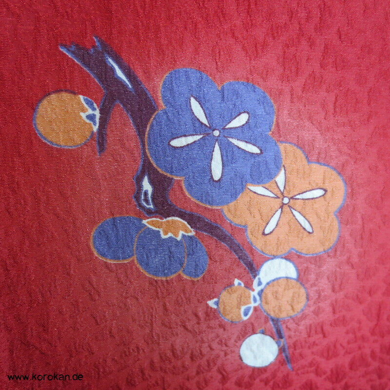 japanischer Ume Blüten auf dunkelrot Chu Furisode - Synthetik, waschbar