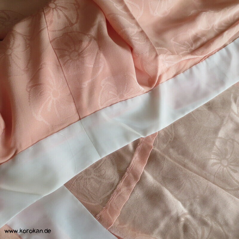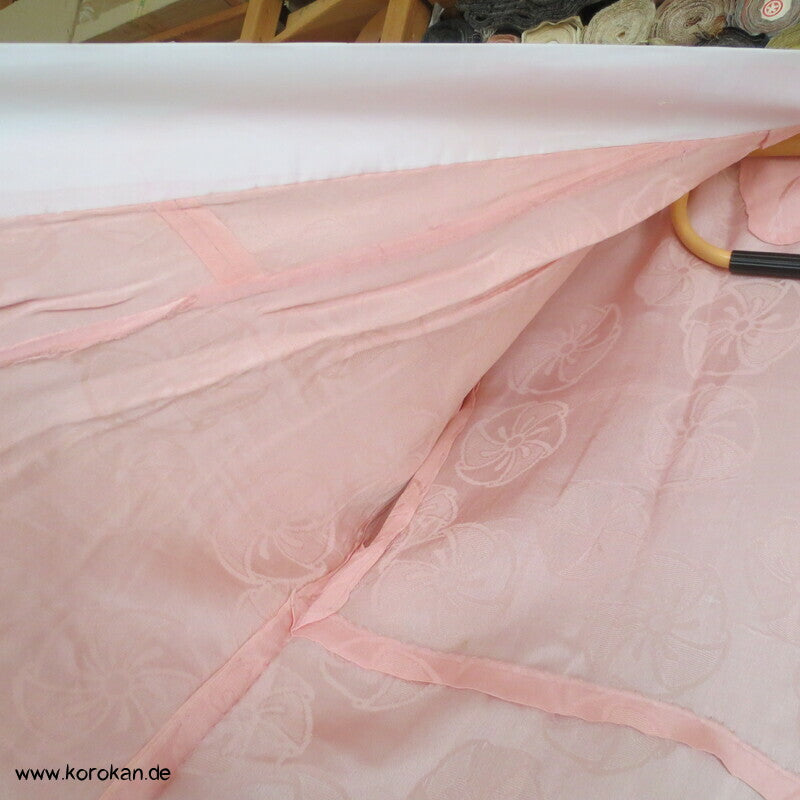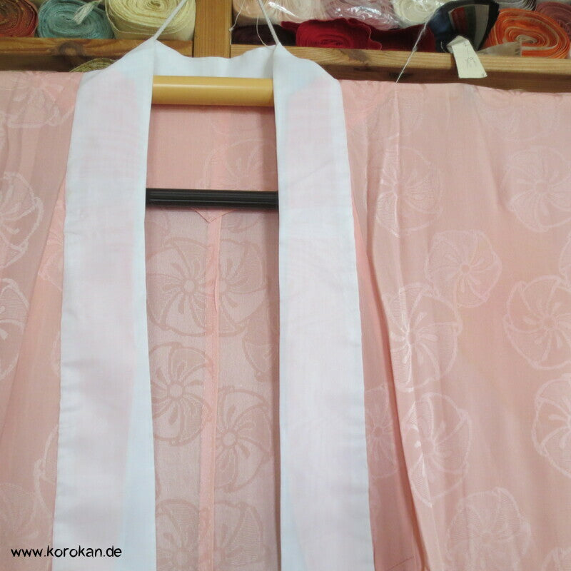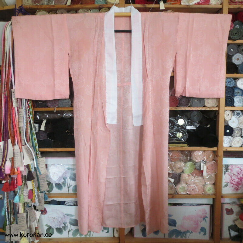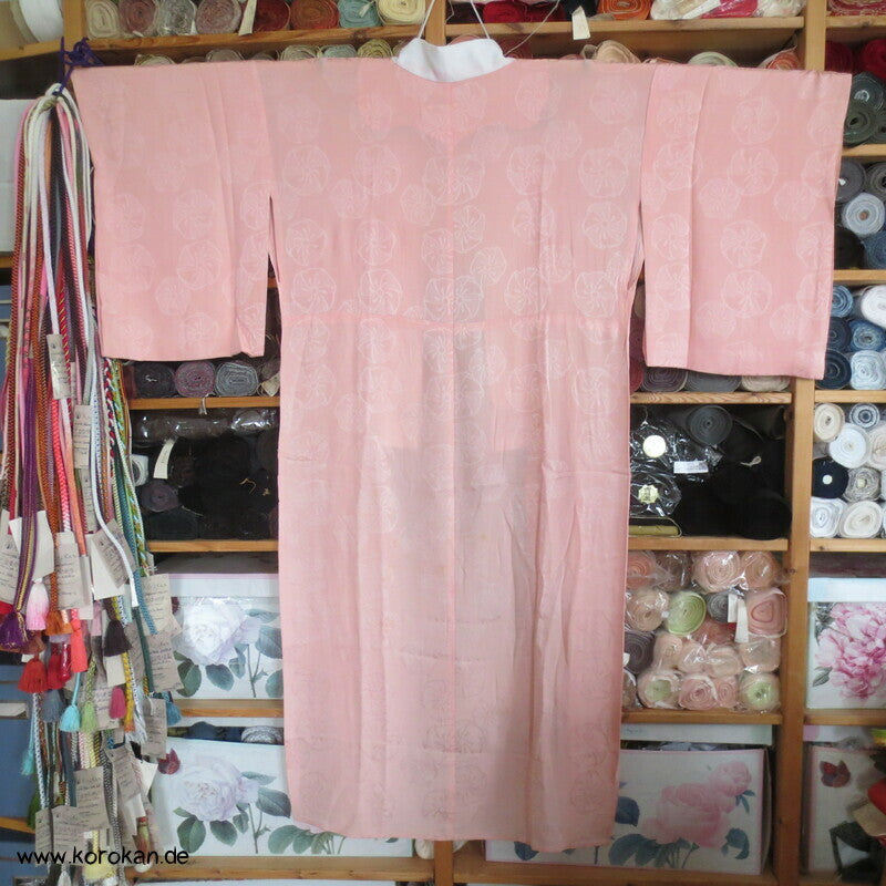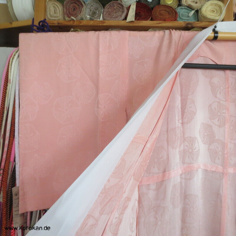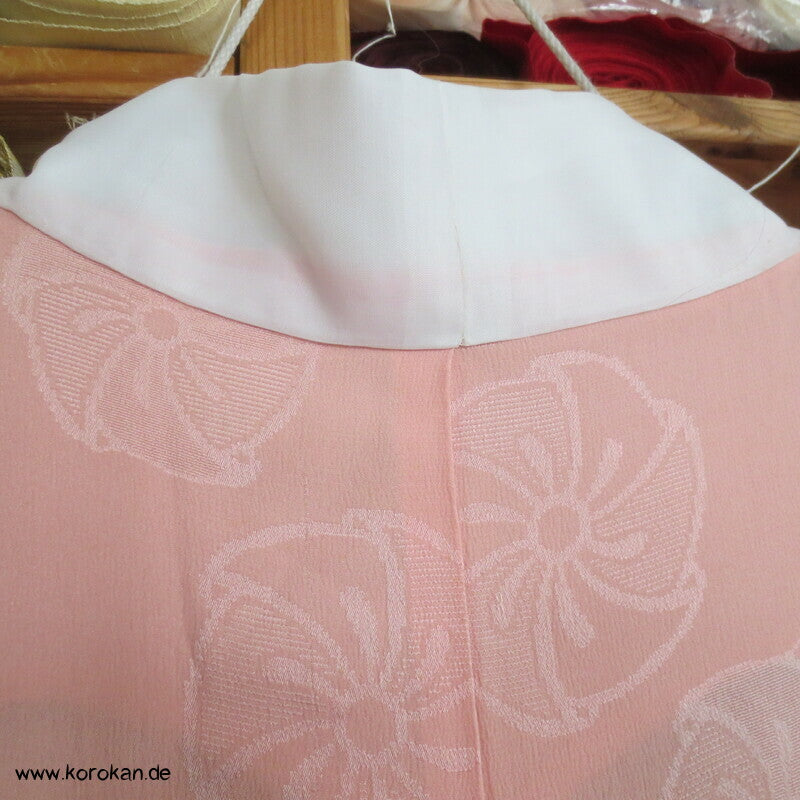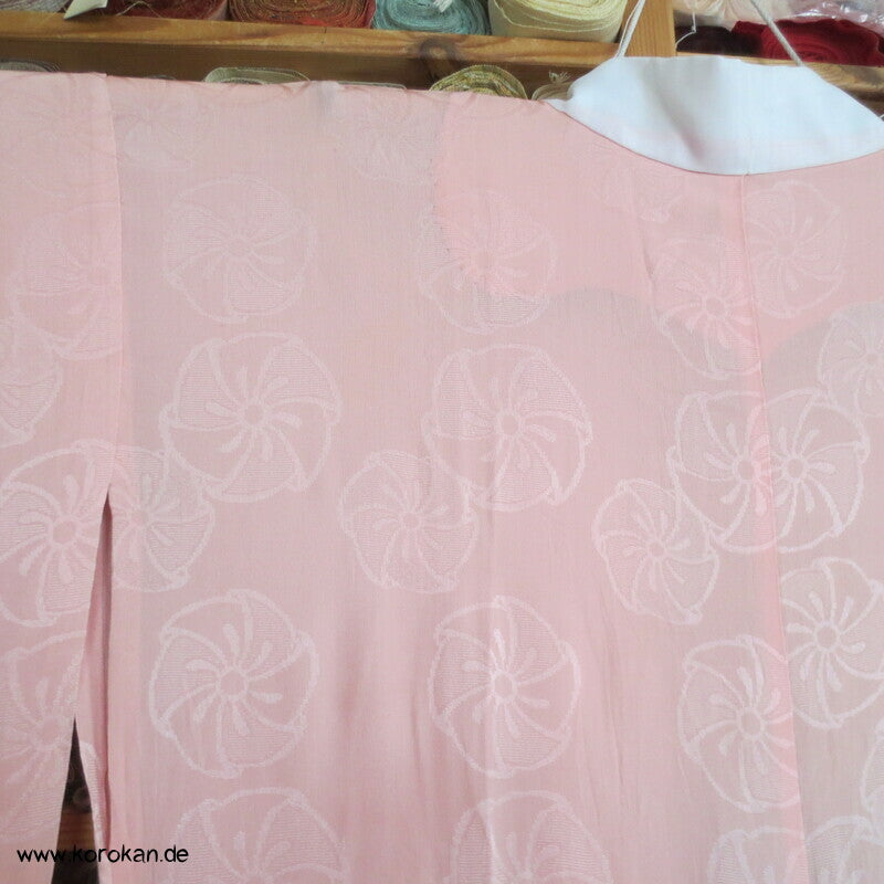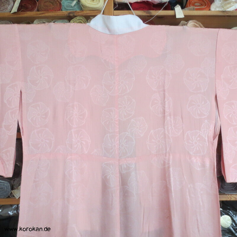 Vintage, eher antiker ungefütterter Juban Unter Kimono Seidendamast mit Ume Windrädern eingewebt, hellem (Unter)Kragen aus Synthetik - da gehört wohl noch ein Han Eri drauf.