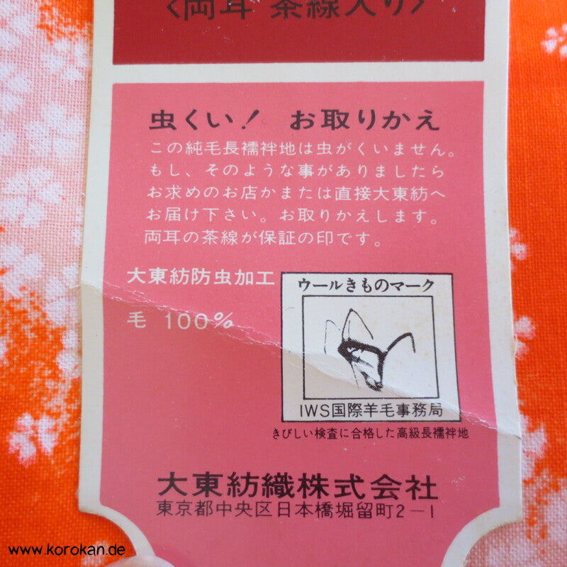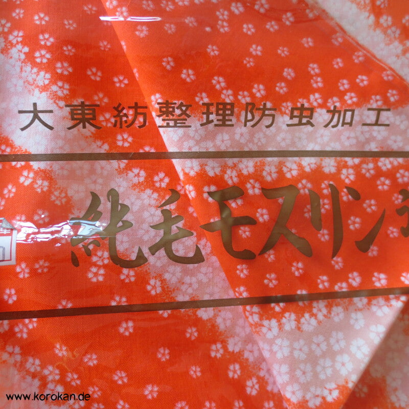 Vintage unbenutzte originalgeheftete Stoffrolle Tanmono für Juban Unterkimono feiner weicher Wollmuslin mit diagonalen Millefleur Streifen