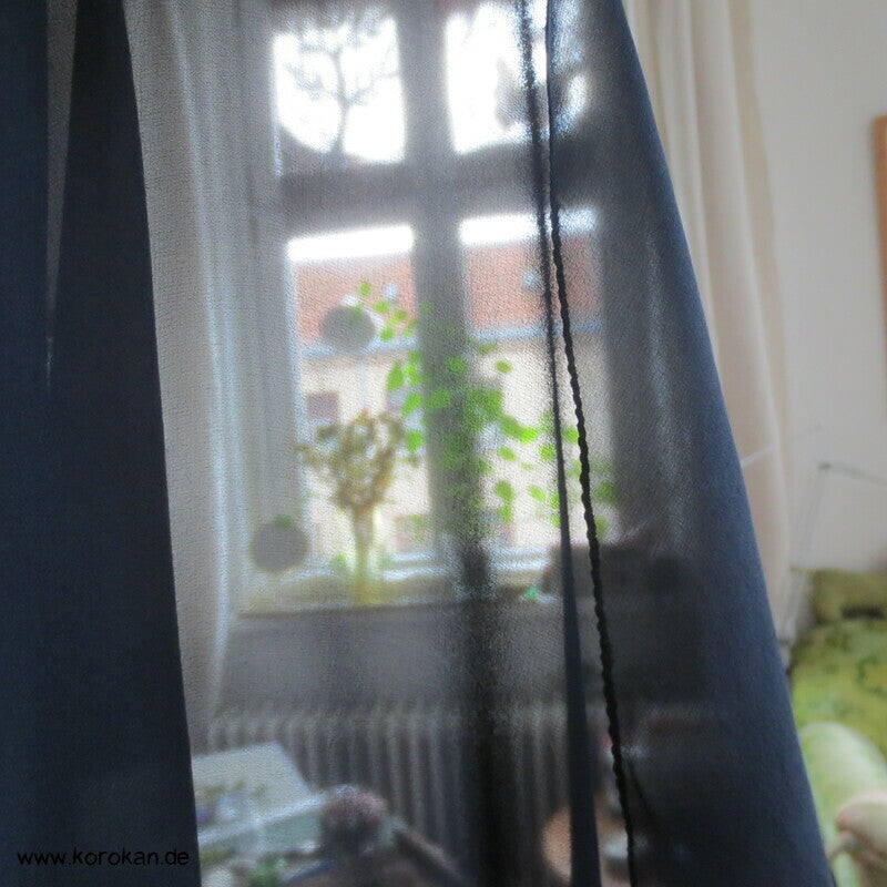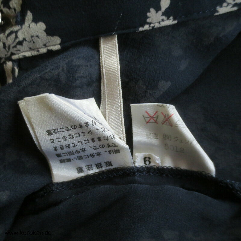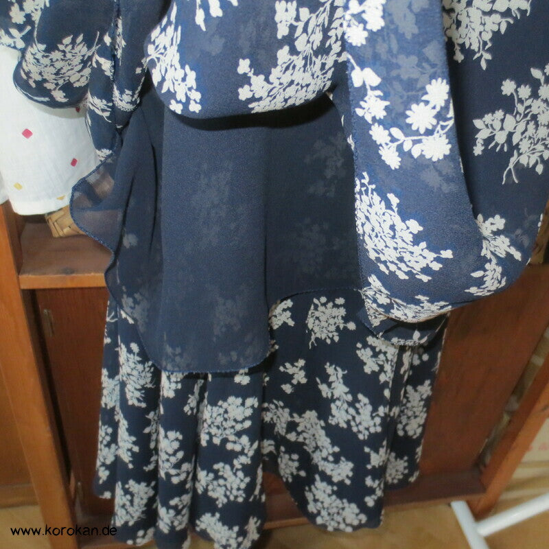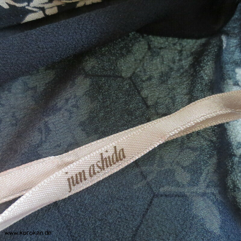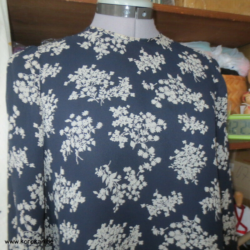 Japan Vintage, frisch gewaschenes Ensemble Kleid von jun ashida aus Japan, reine Seide, Crepe Chiffon, sowohl der fein gemusterte Oberstoff, als auch die zweite Lage in dunkelblau - superfein verarbeitet, selbst die Ärmel sind doppellagig.