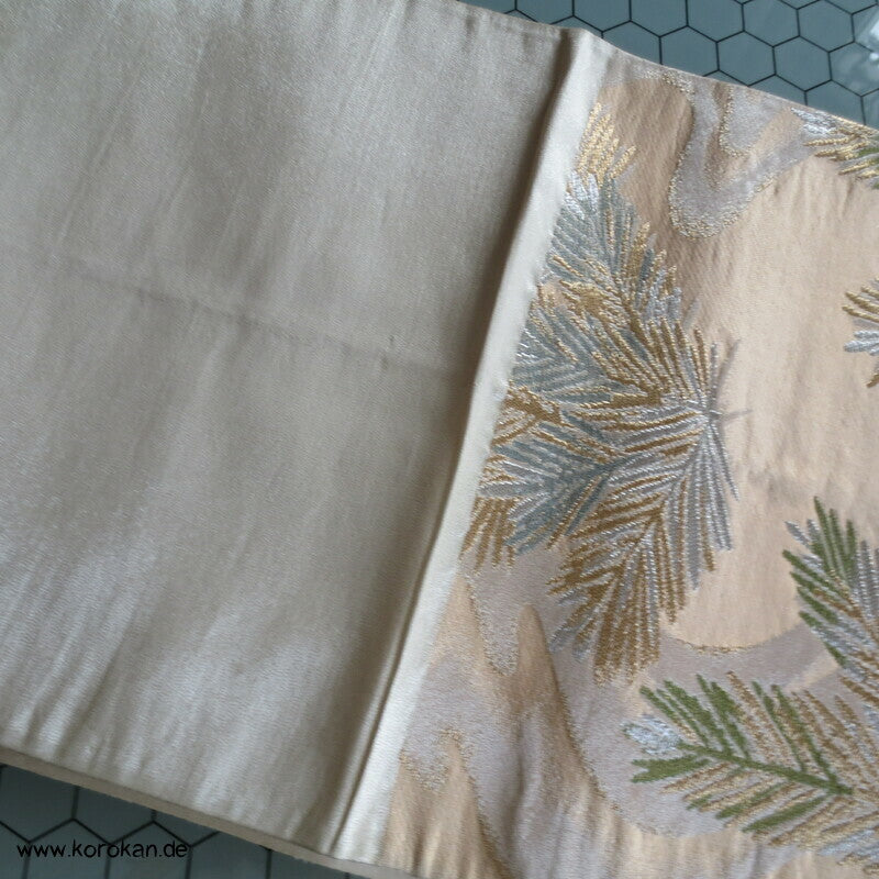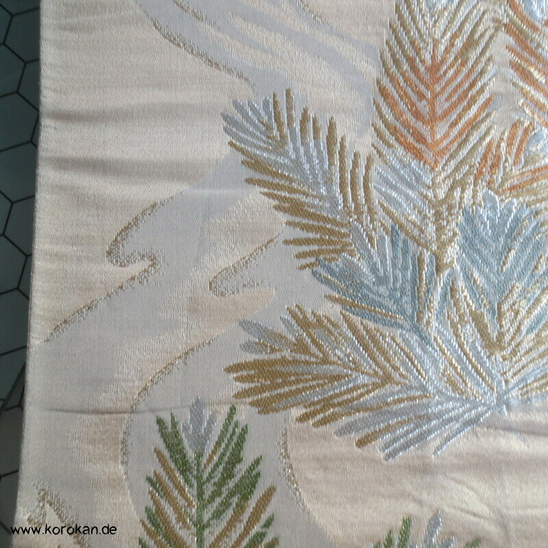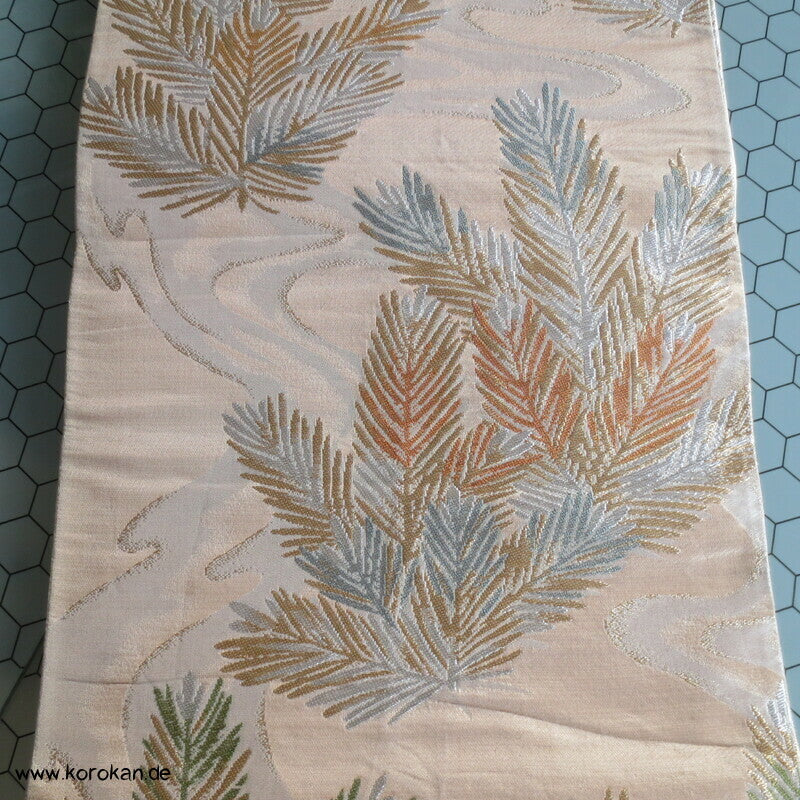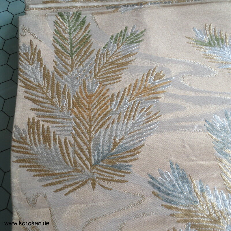 junge Kieferntriebe Fukuro Obi Seidenbrokat Kimonogürtel
