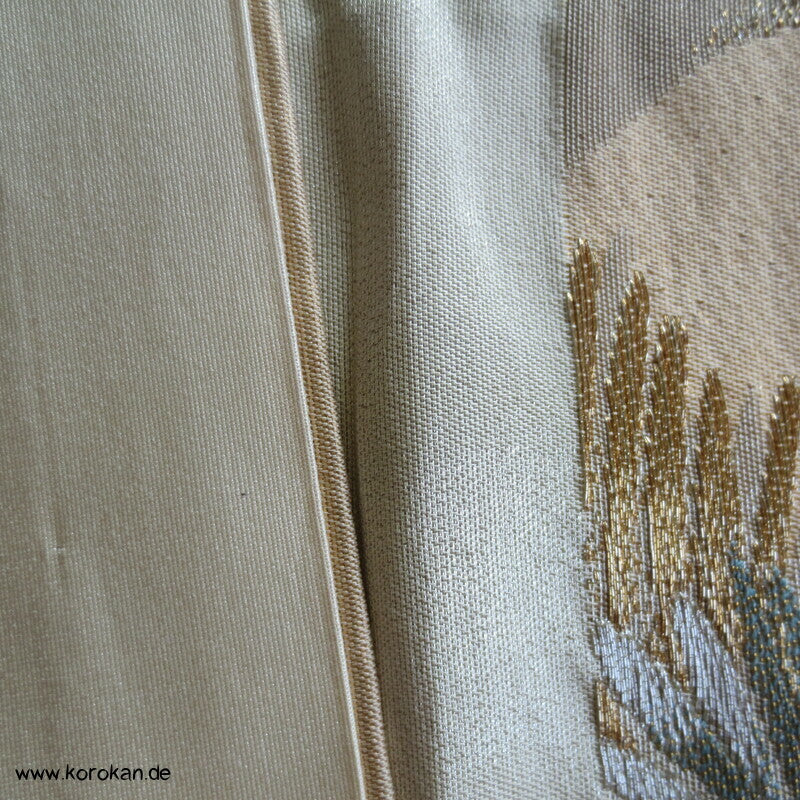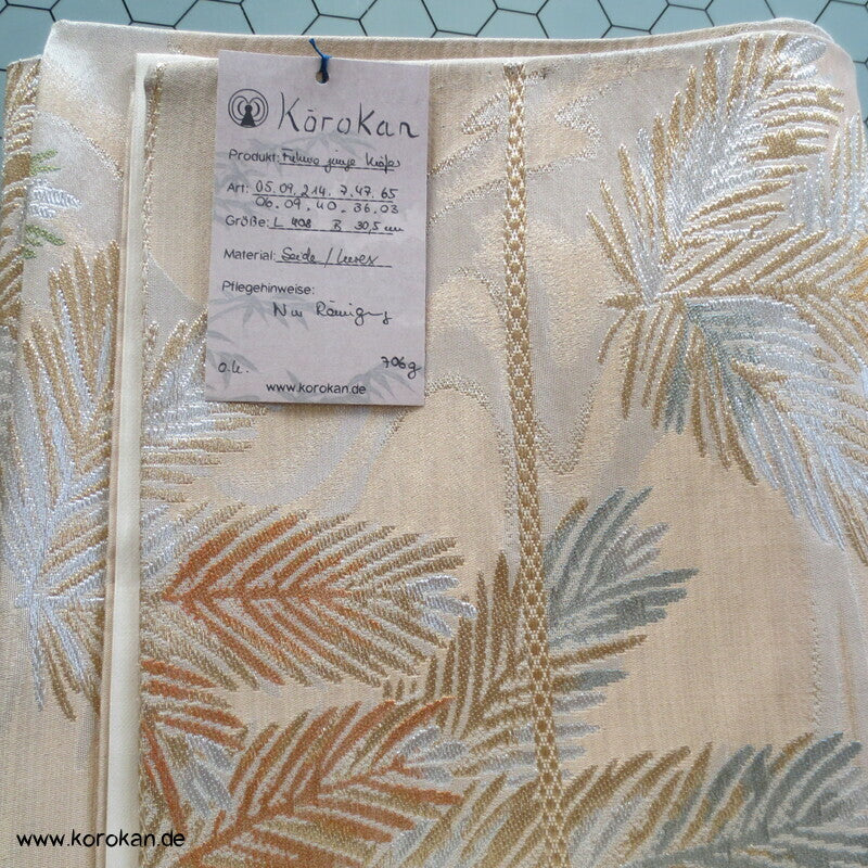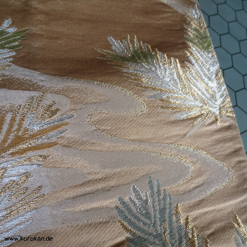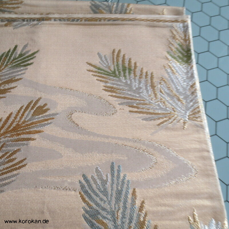 japanischer Vintage Fukuro Seidenbrokat junge Kieferntriebe in silber und gold