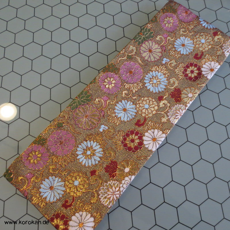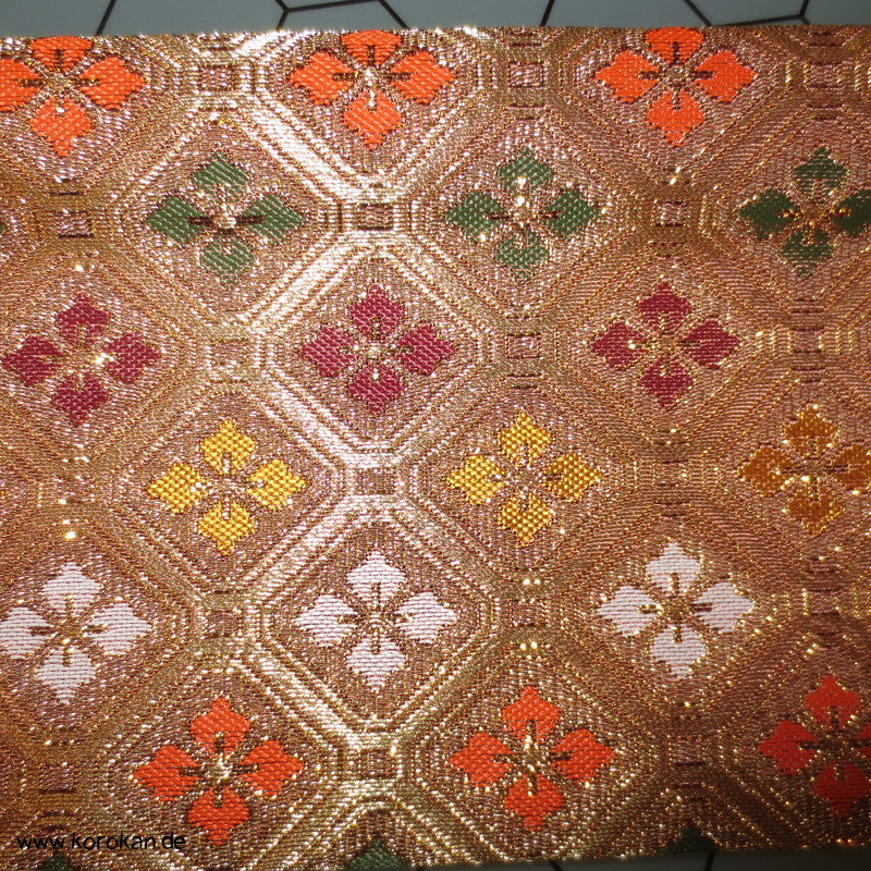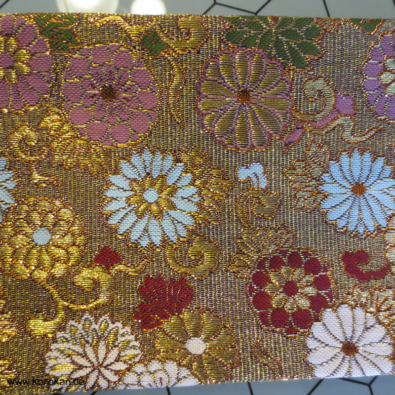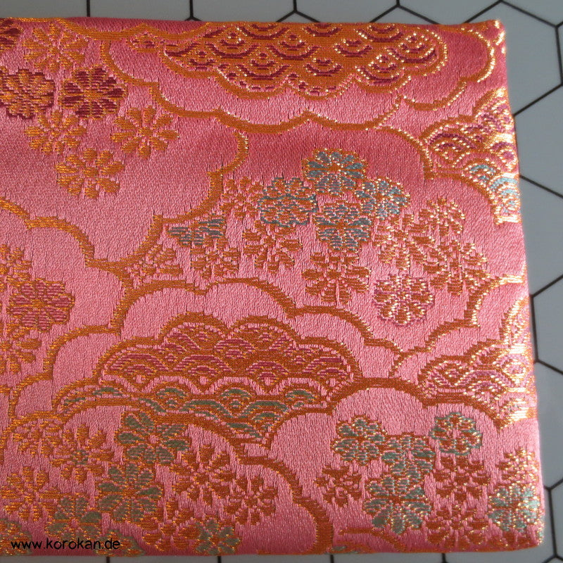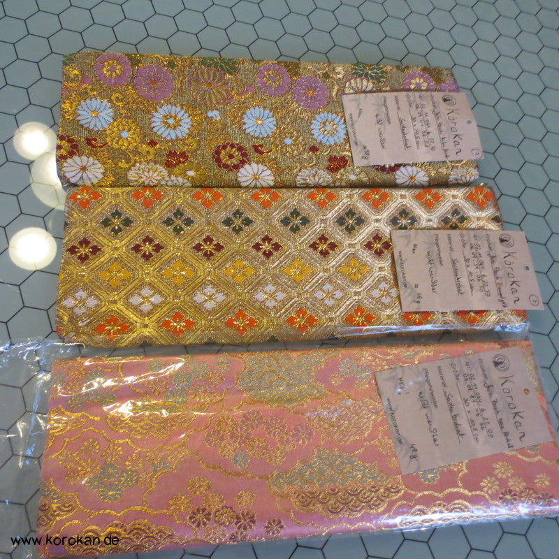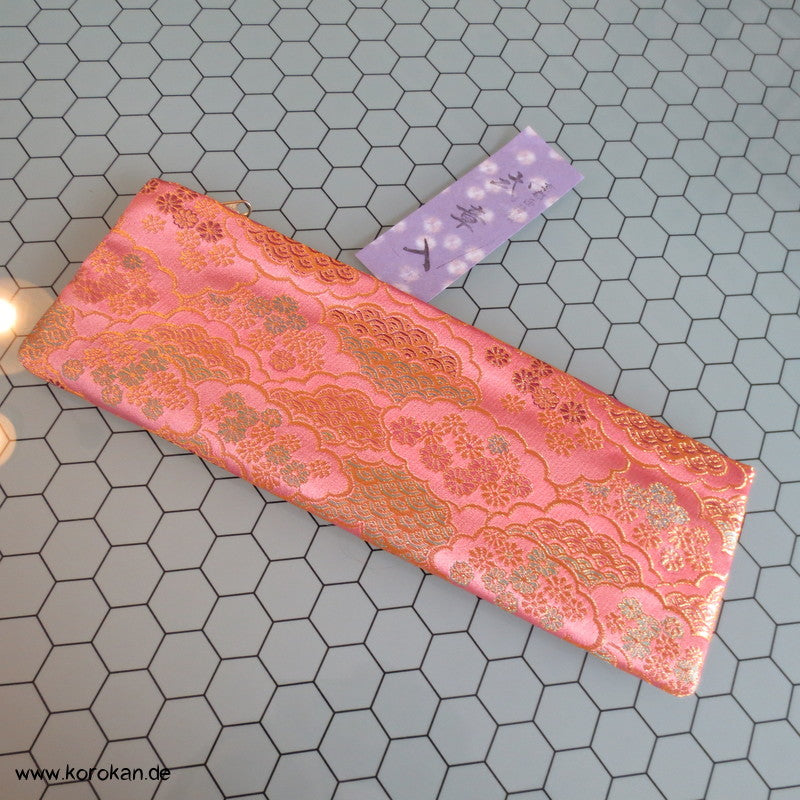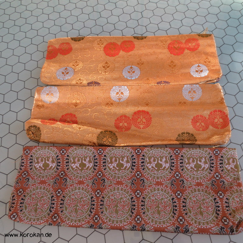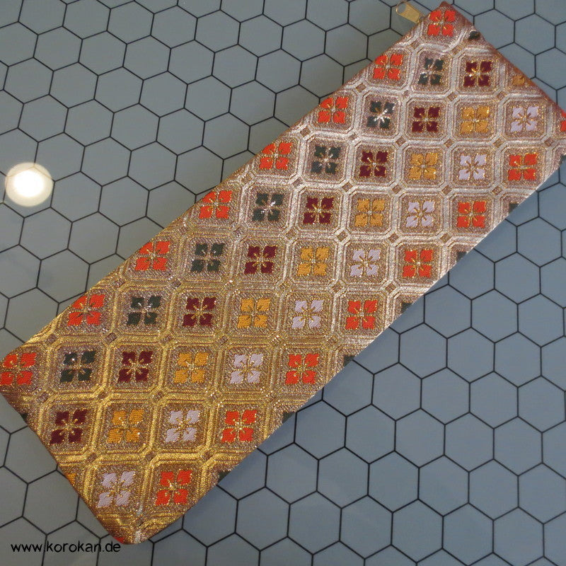 japanische Vintage unbenutzte Juzu Pouch / Clutch Handtasche aus feinem Seidenbrokat mit Metallreissverschluss mit farbigem Stoff gefüttert,