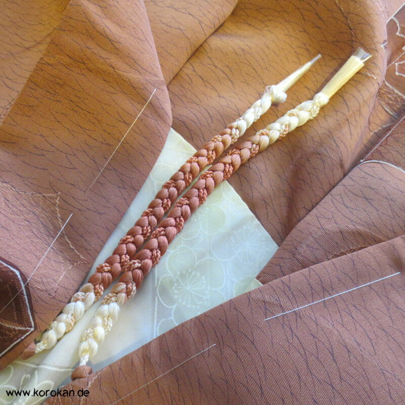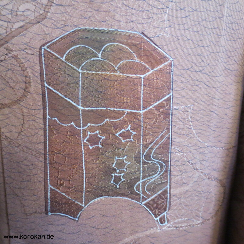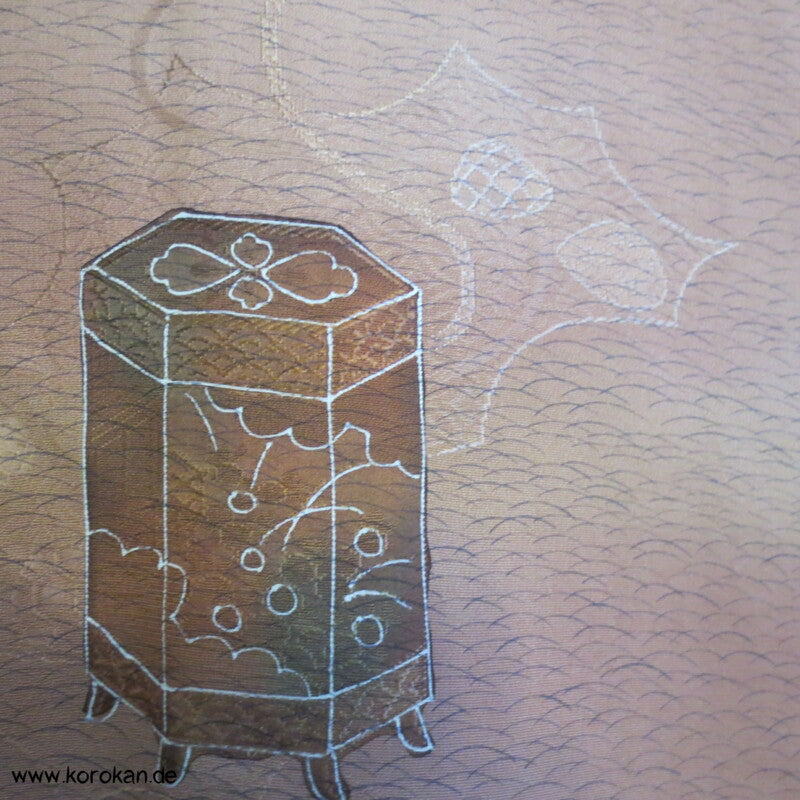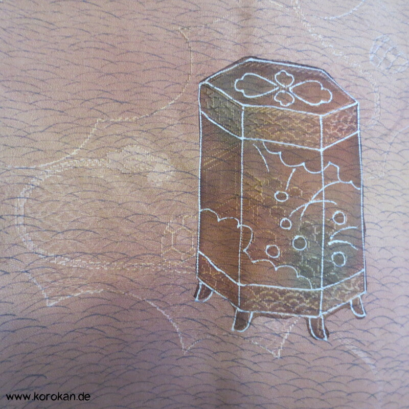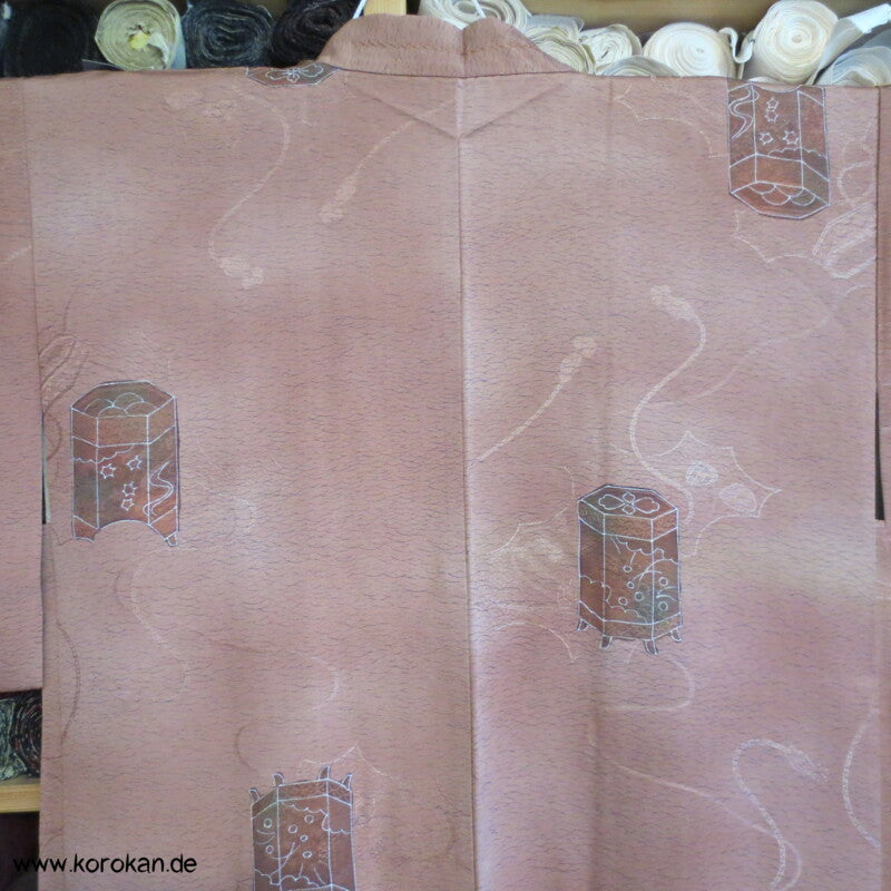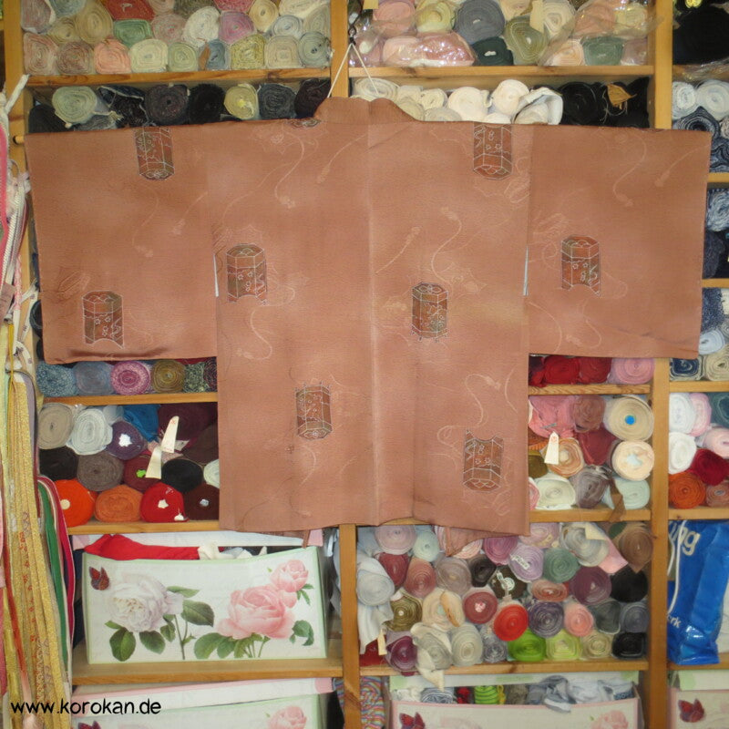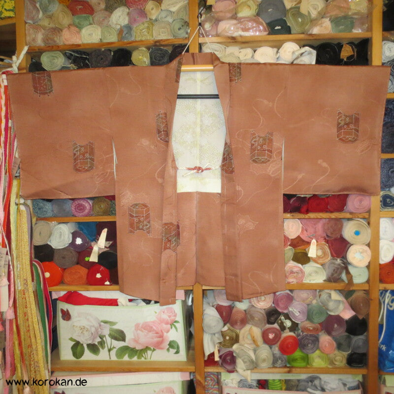 Kaioke Muschelkästchen Haori Kimono Jacke braunrosa Seidendamast