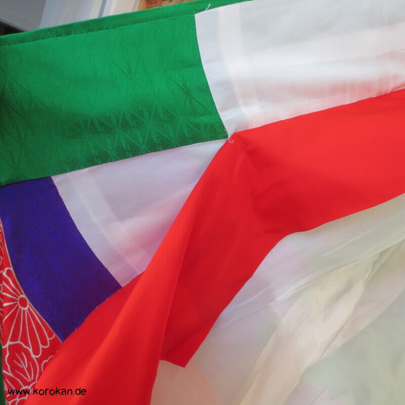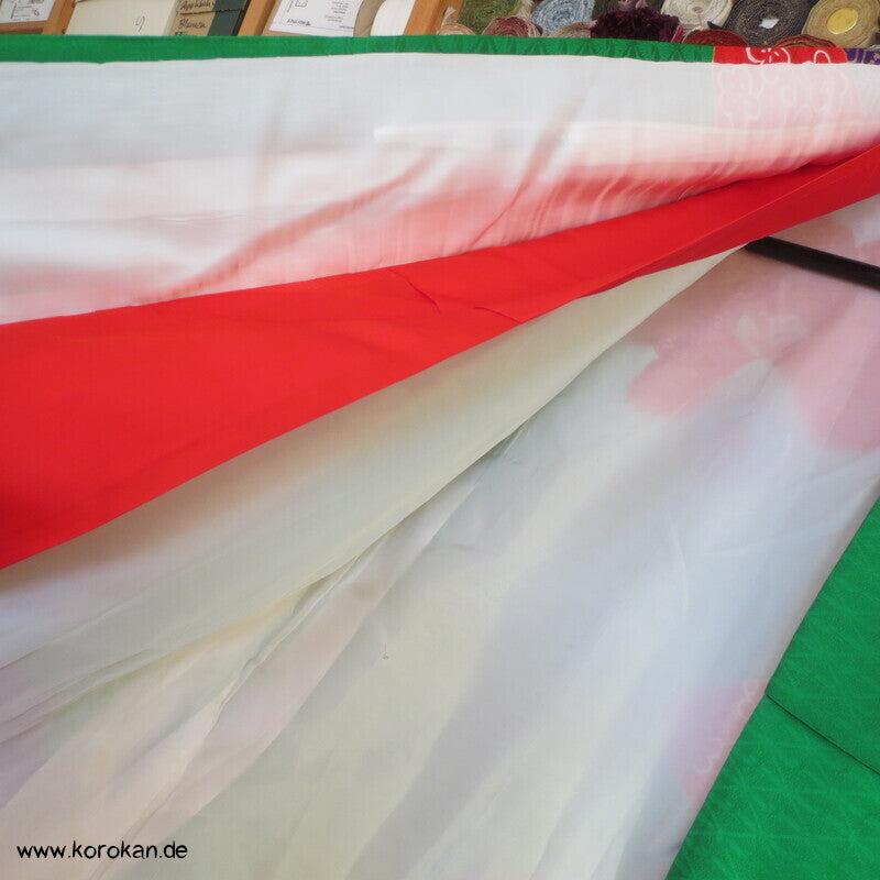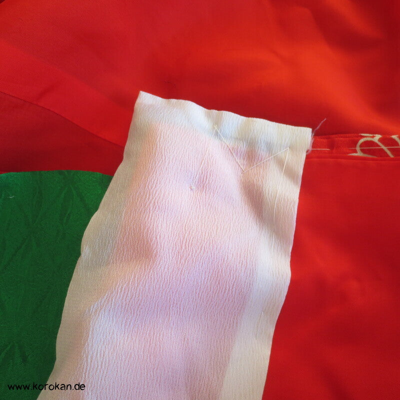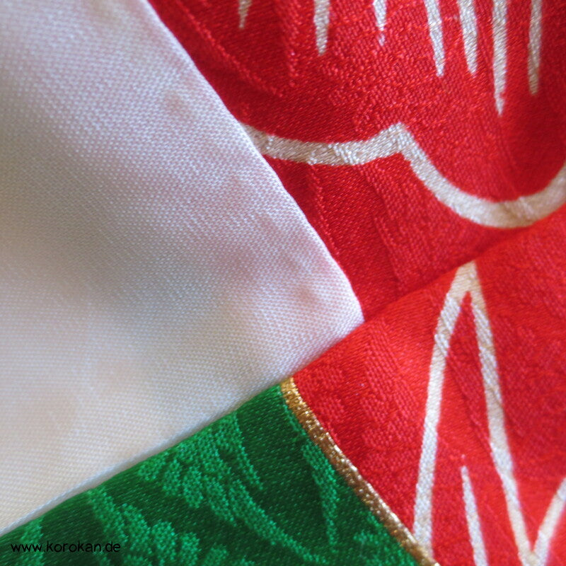 Oberes Futter helle Seide, unteres Hakkake Seidenfutter mit Muster - zweites Ärmel und Hakkake Futter ist wohl Synthetik.