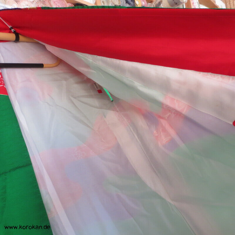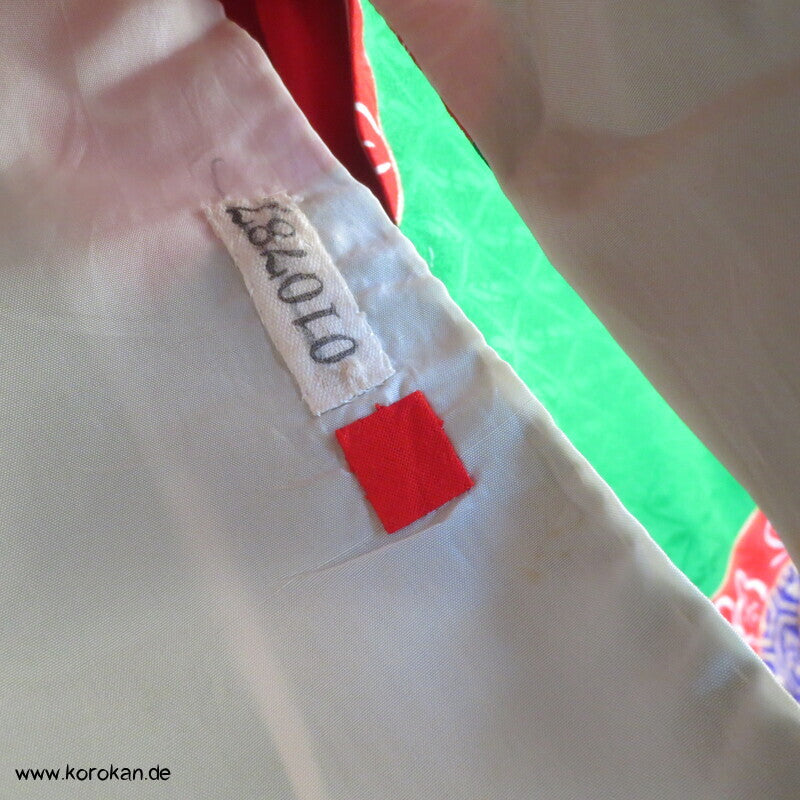 gepolsterter Saum mit Schutzstreifen aufgeheftet, sauber, noch gut tragbar. Hat eine Nummer eingenäht - scheint aus einem Kimonoverleih zu stammen.