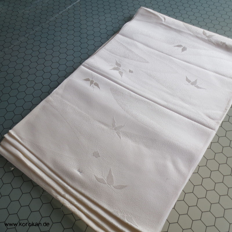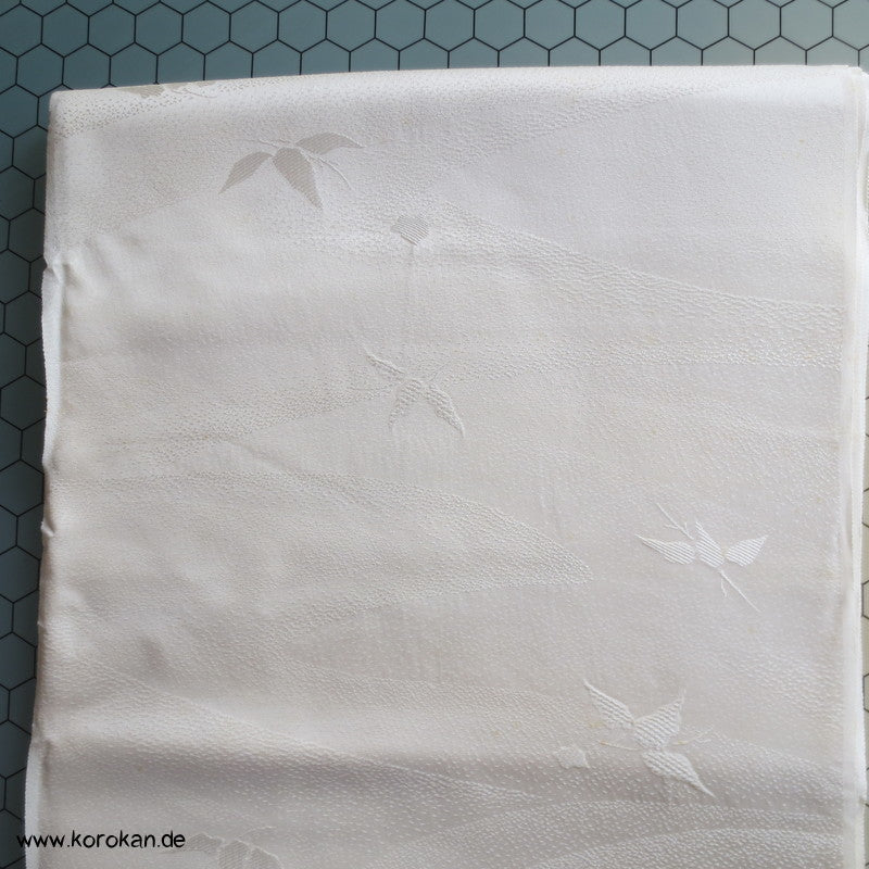 japanischer Vintage unbenutzter Kimono Brautkimono Seidendamast gewebte Blätter Muster, kleine Muster, reinnaturweiß
