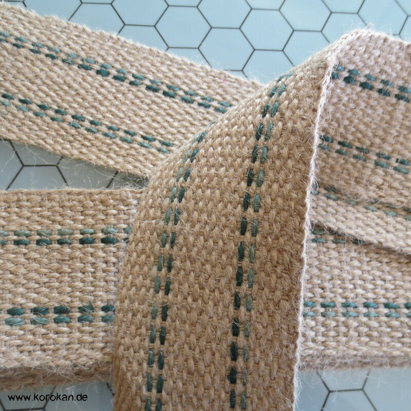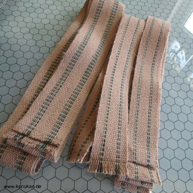 Kaku Männer Obi Gürtel grobe Jute mit grünen Streifen