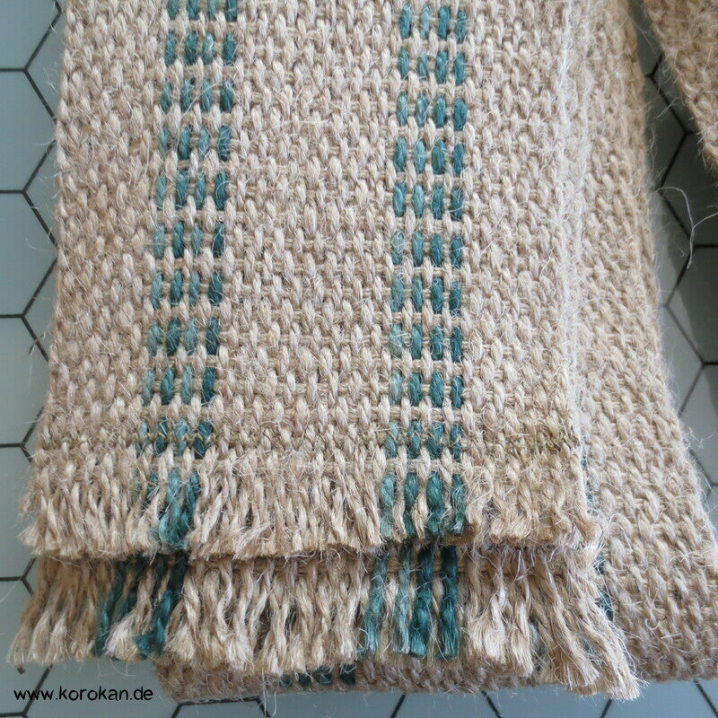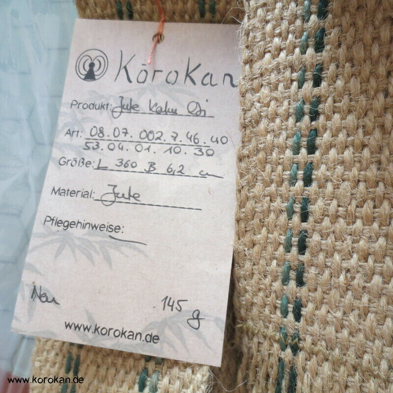 L = Länge 360 cm, Breite 6,2, 145 g, Enden gefranst mit Sicherungsnaht