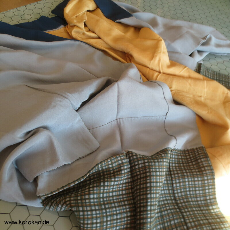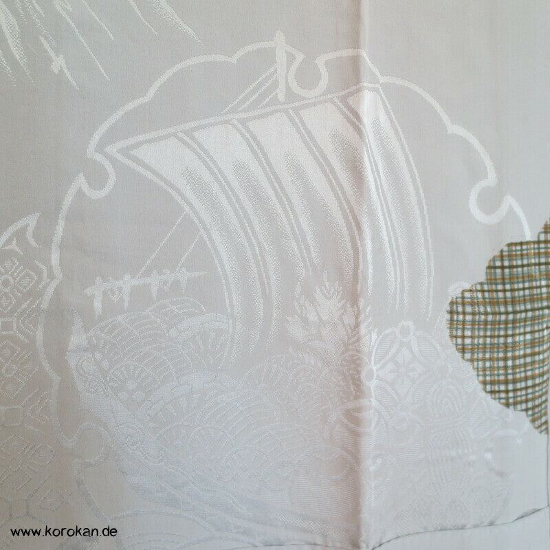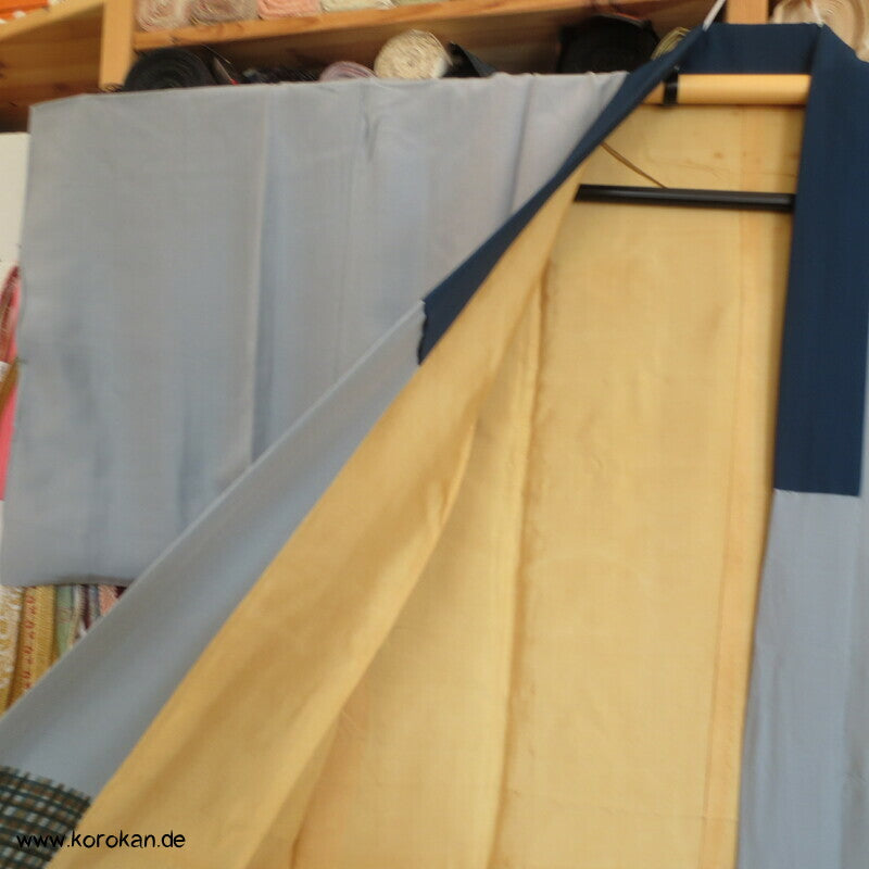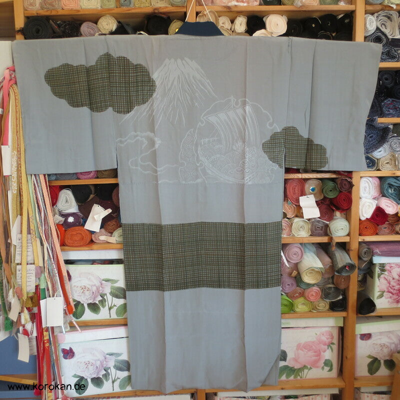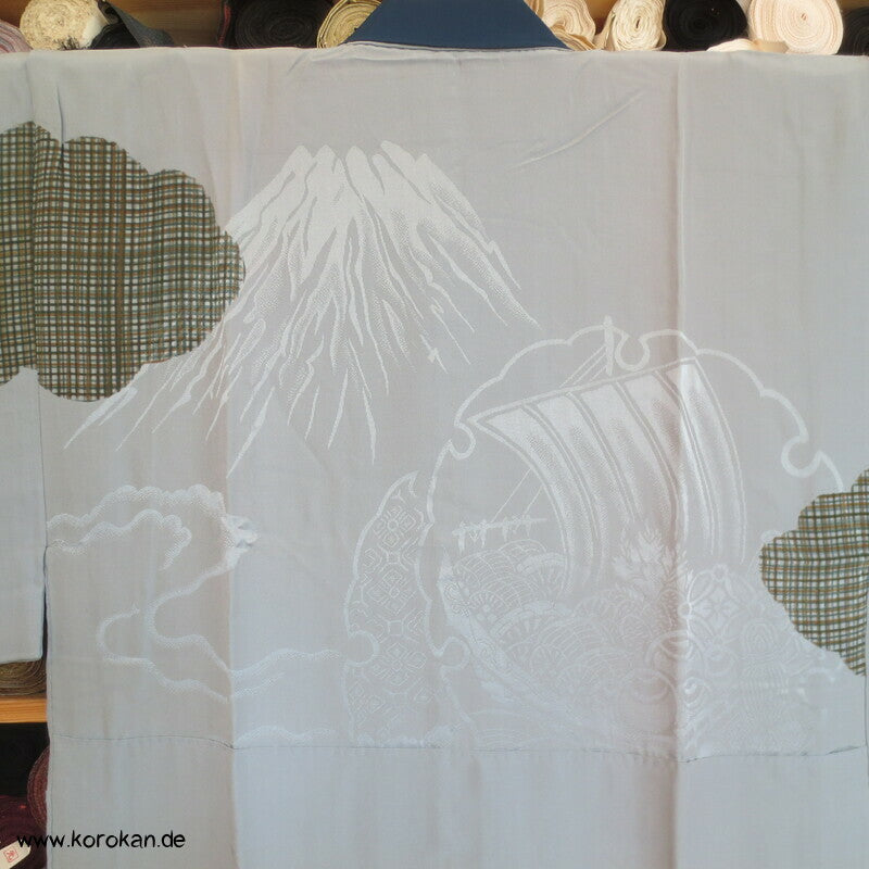 Vintage Männer Juban Unter Kimono, Seidendamast mit eingewebtem Fuji san Motiv, Karostreifen, Seiden Ripskragen.