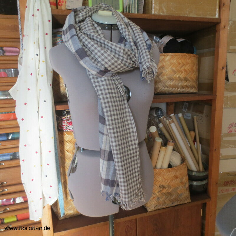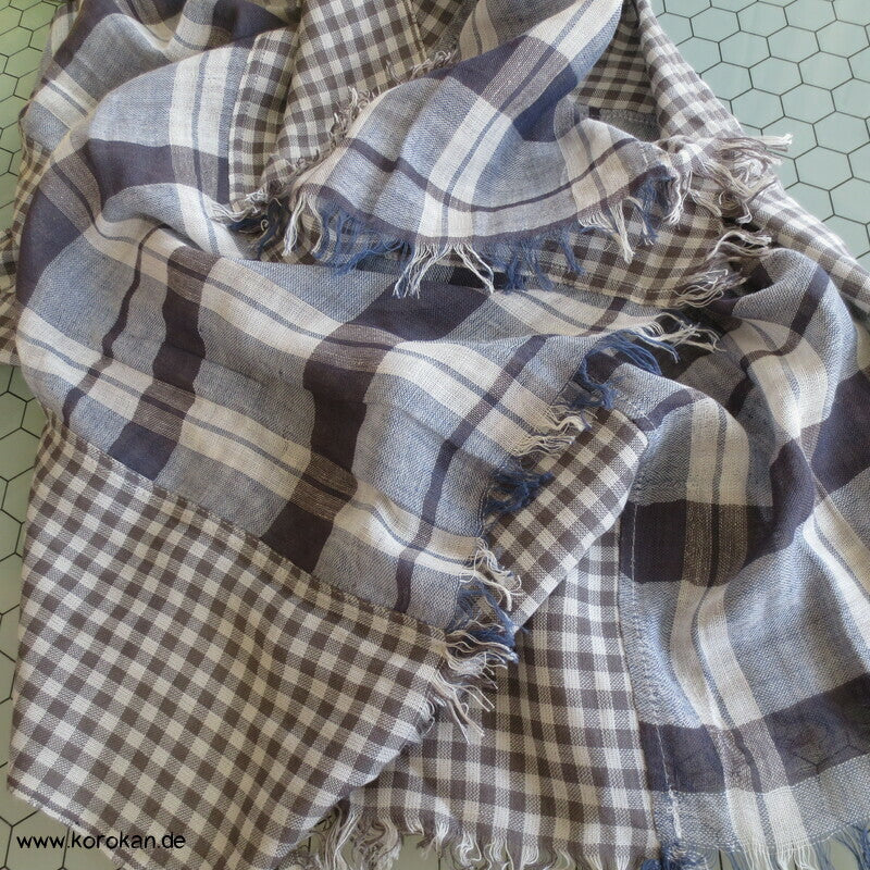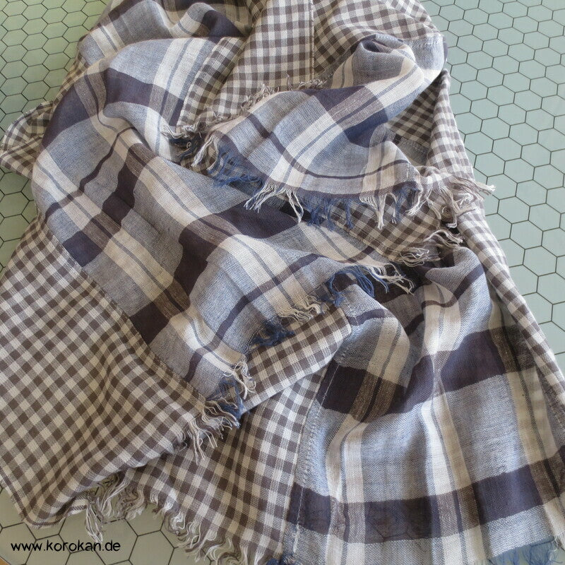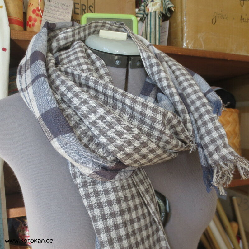 Vintage Kimono Schal Schultertuch Karo Baumwolle