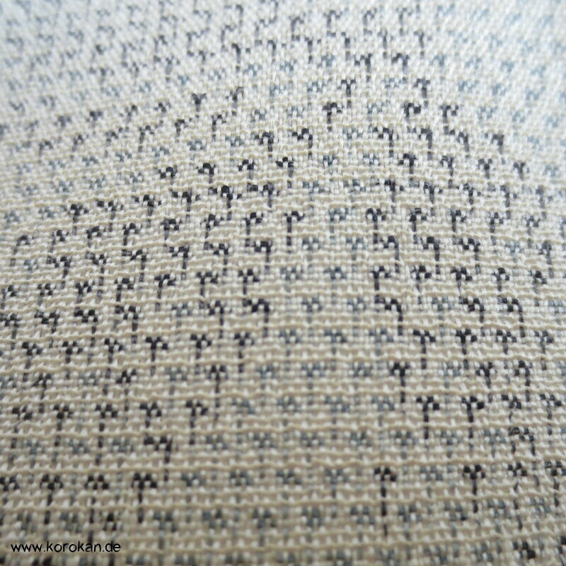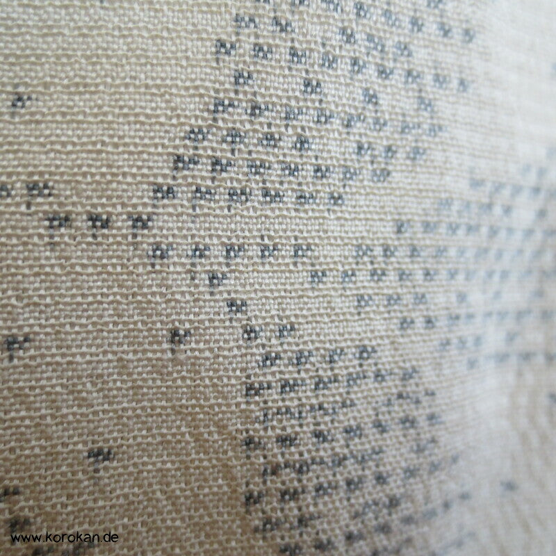 Vintage Hitoe ungefütterter Tsumugi Seiden Kimono Kasuri garngefärbt eingewebte Arabesken in zartblau in natur