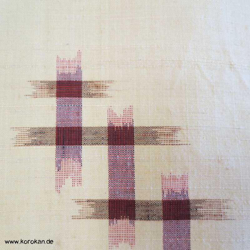 Vintage unbenutzte Stoffrolle Tsumugi Seide / Wolle Mischung Kasuri garngefärbte Kreuzungen in weinrot auf creme