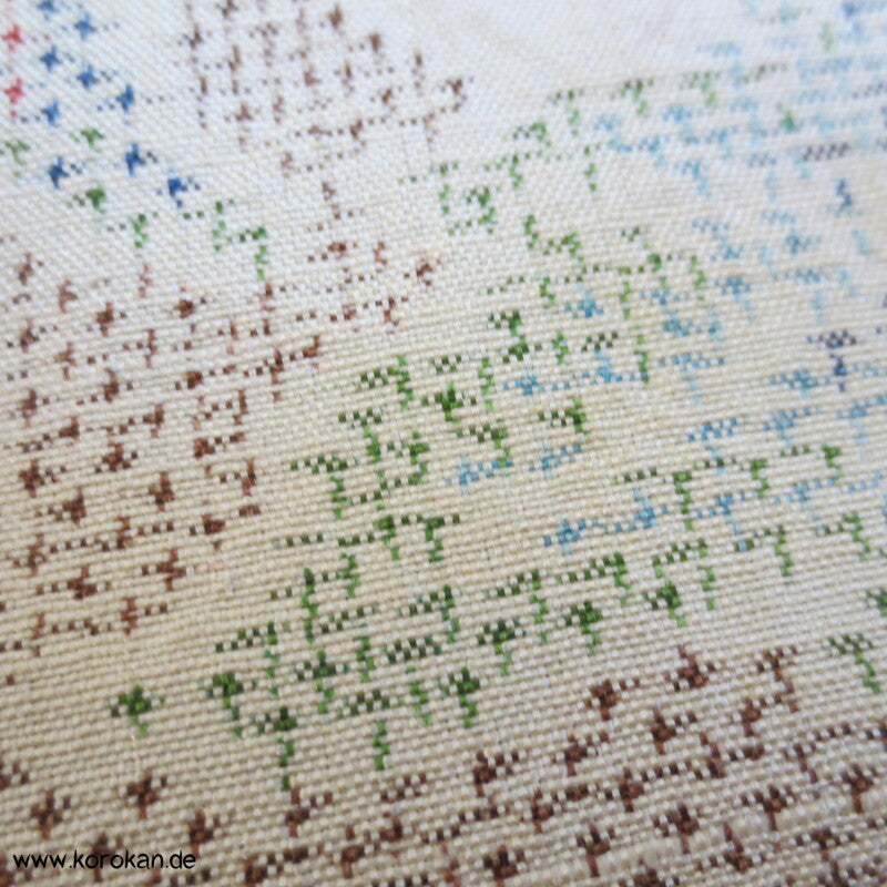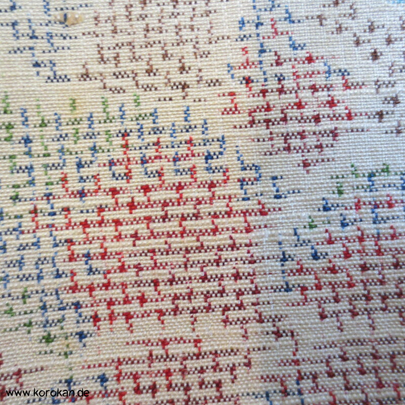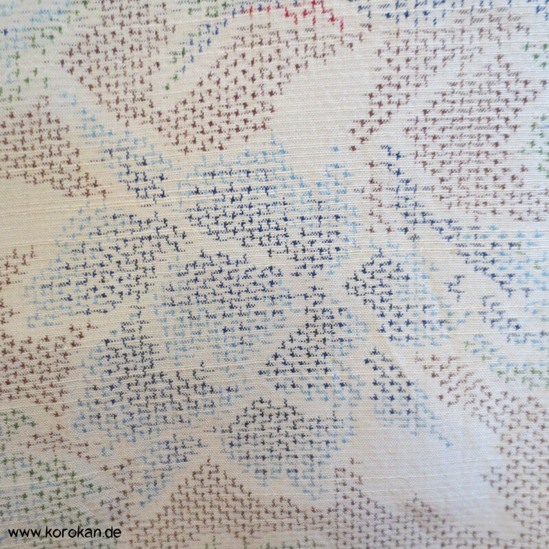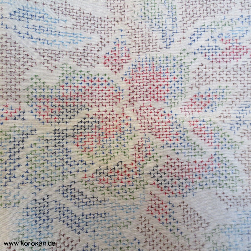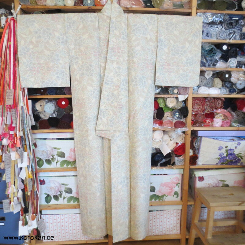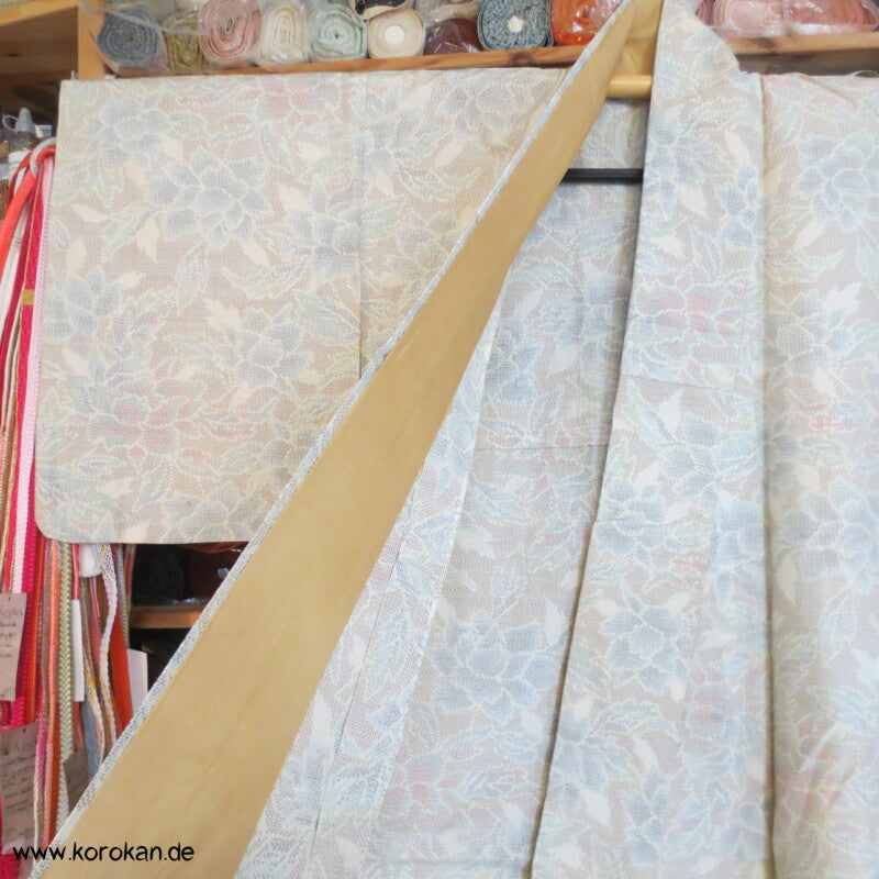 Vintage Hitoe ungefütterter Tsumugi Seiden Kimono Kasuri garngefärbte Päonien Blüten, sehr feinteilig