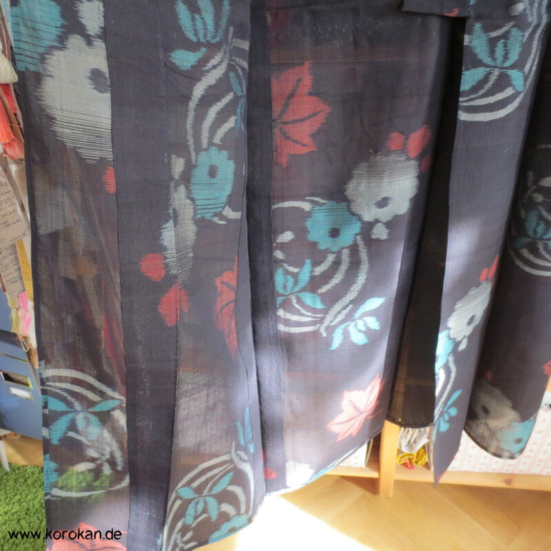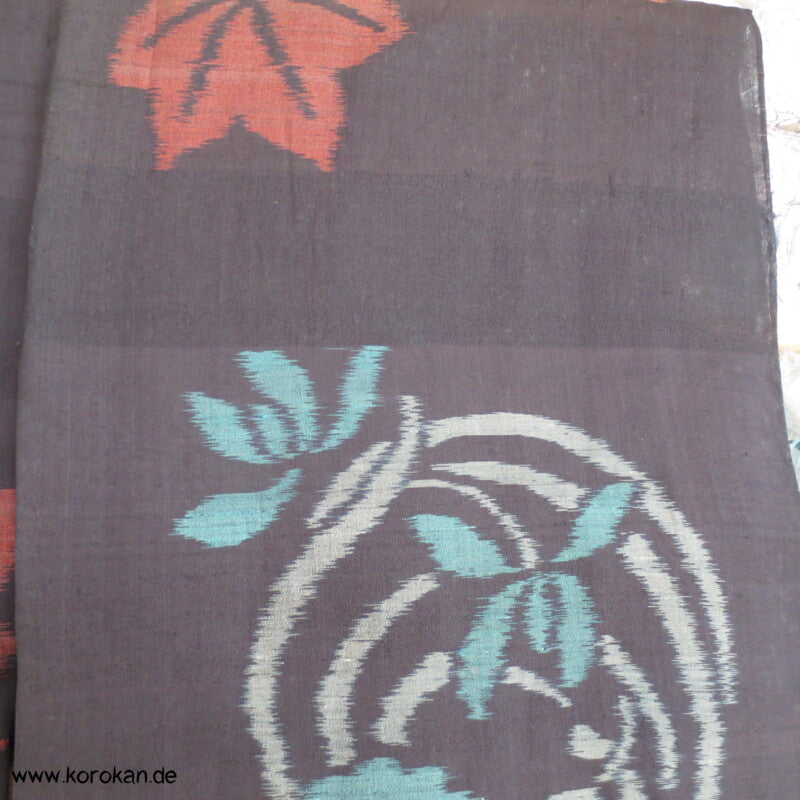 Kasuri Rondelle türkis auf schwarz Hitoe Meisen Komon Kimono