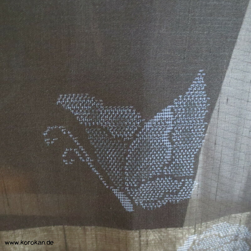 Kasuri Schmetterlinge Hitoe ungefütterter Kimono, Sha Seide