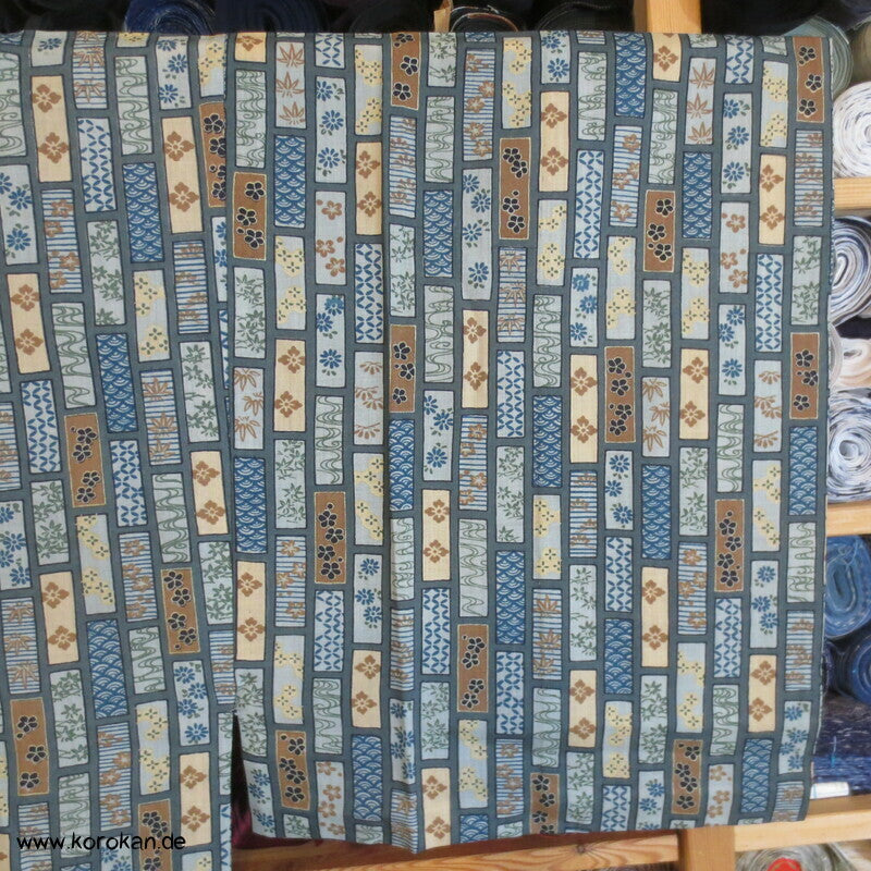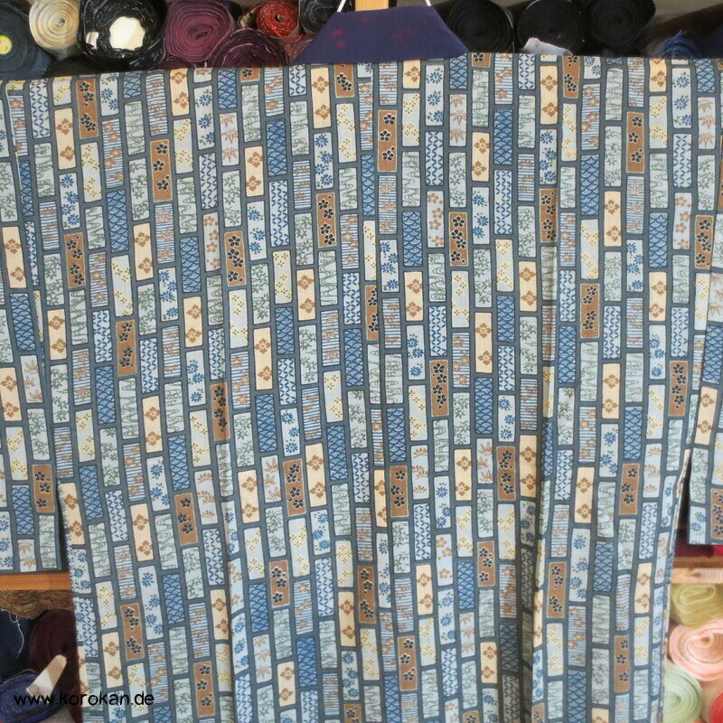 Vintage Männer Juban Unterkimono aus feinem weichen Woll Musselin bedruckt mit Kesa Patchwork.