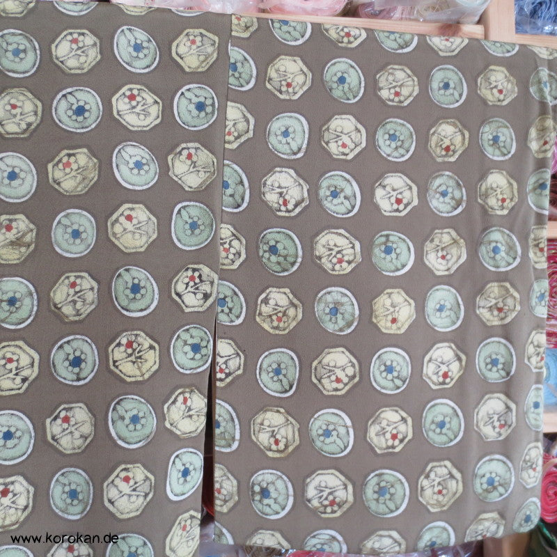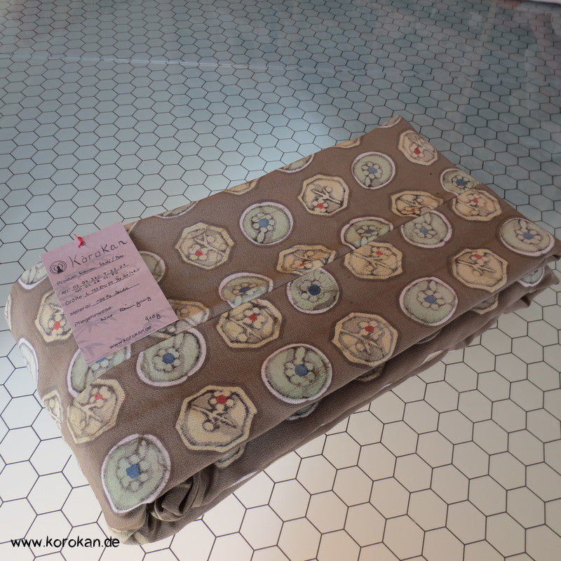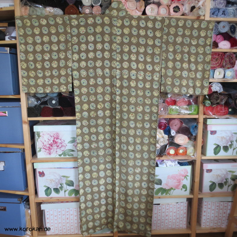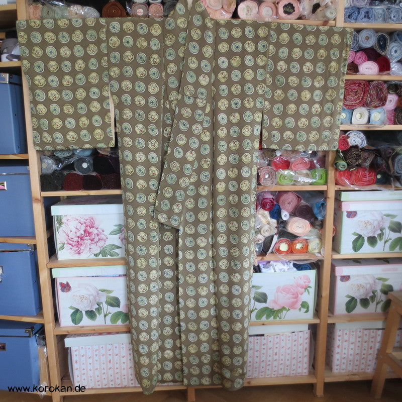 Khaki mit Musterkreisen Seidencrepe Komon Kimono