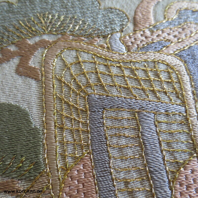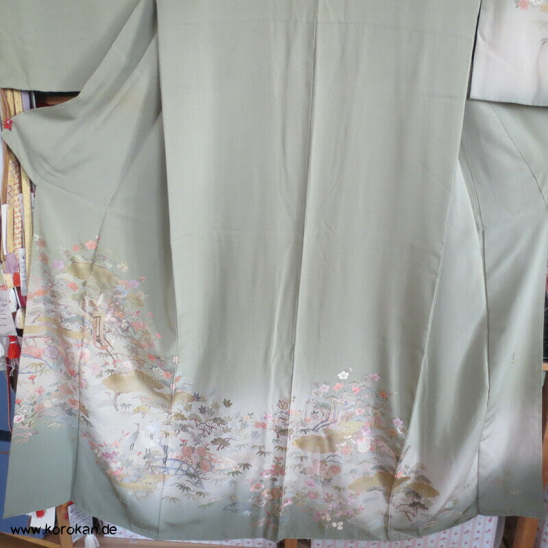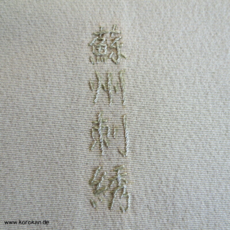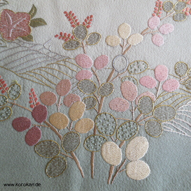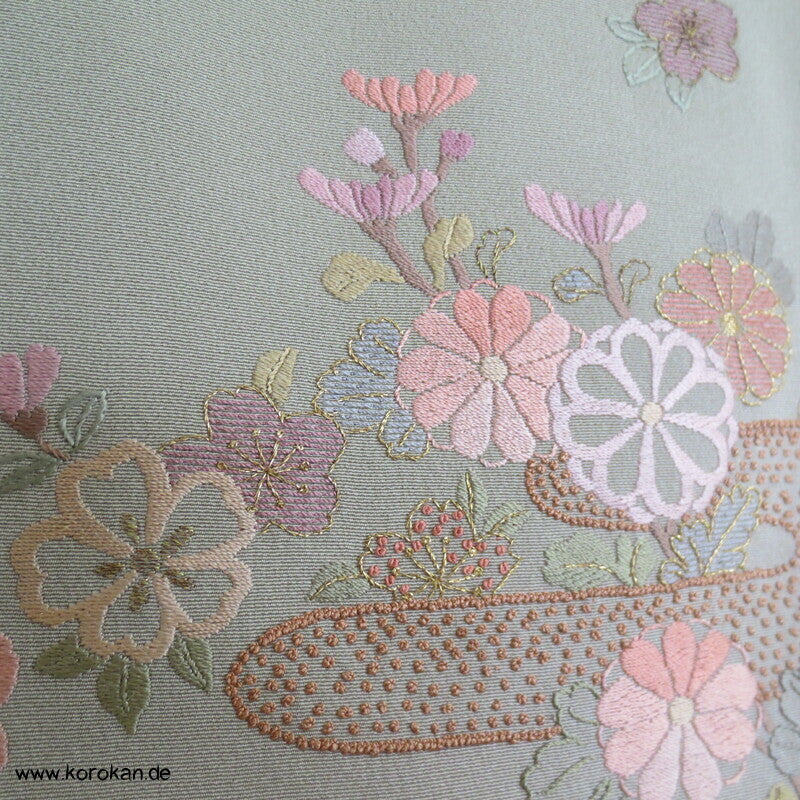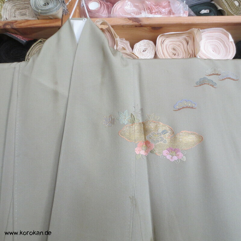 khakigrün Homongi Seidencrepe Kimono, Stickereibild