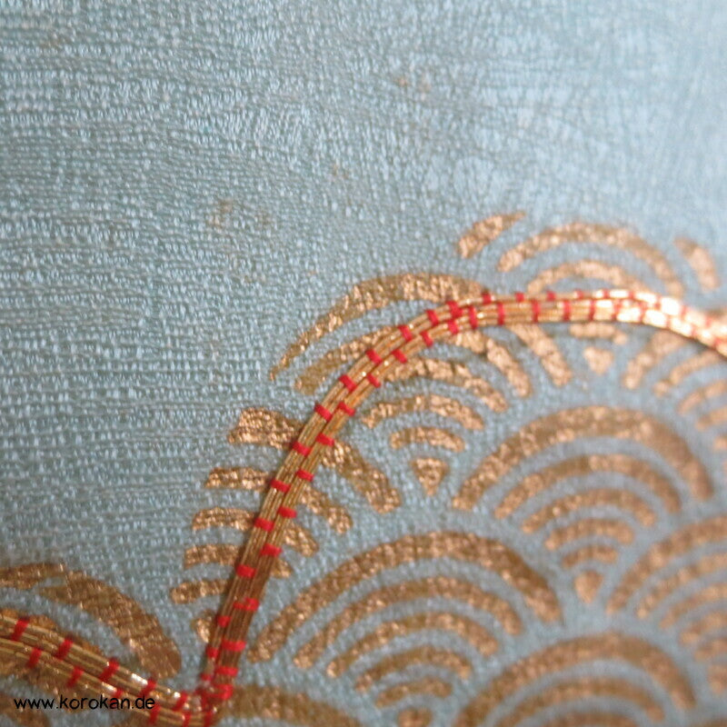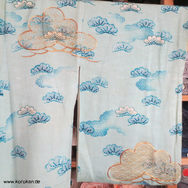 Kiefernbüsche Seidendamast hellblau, blau, gold Homongi Kimono