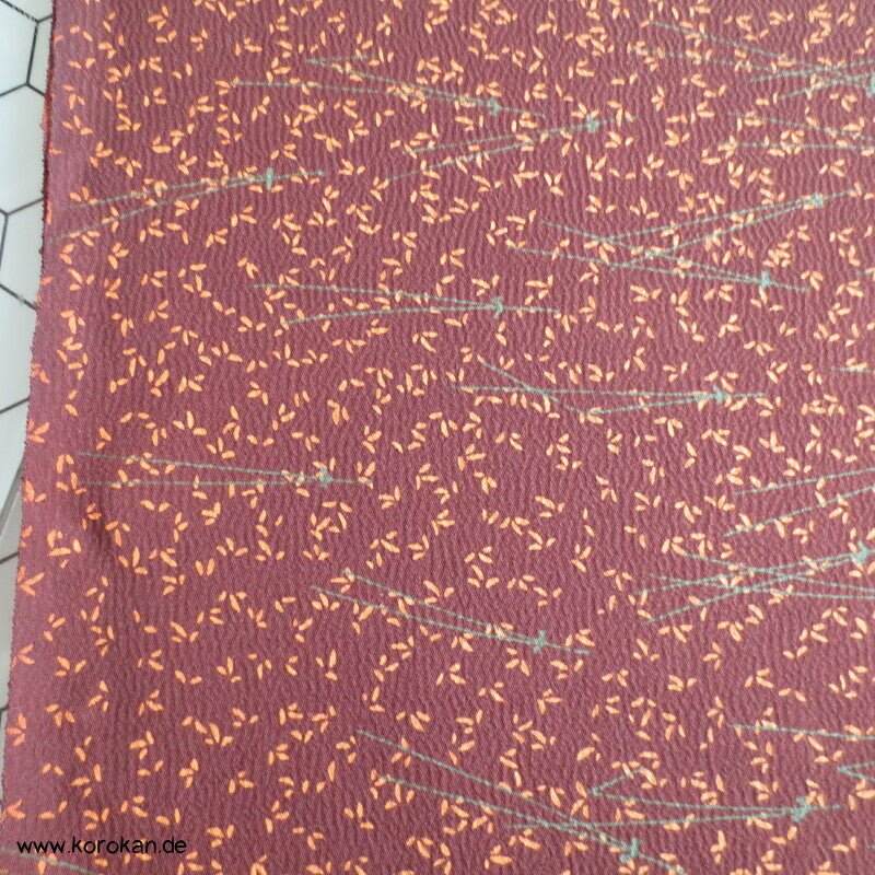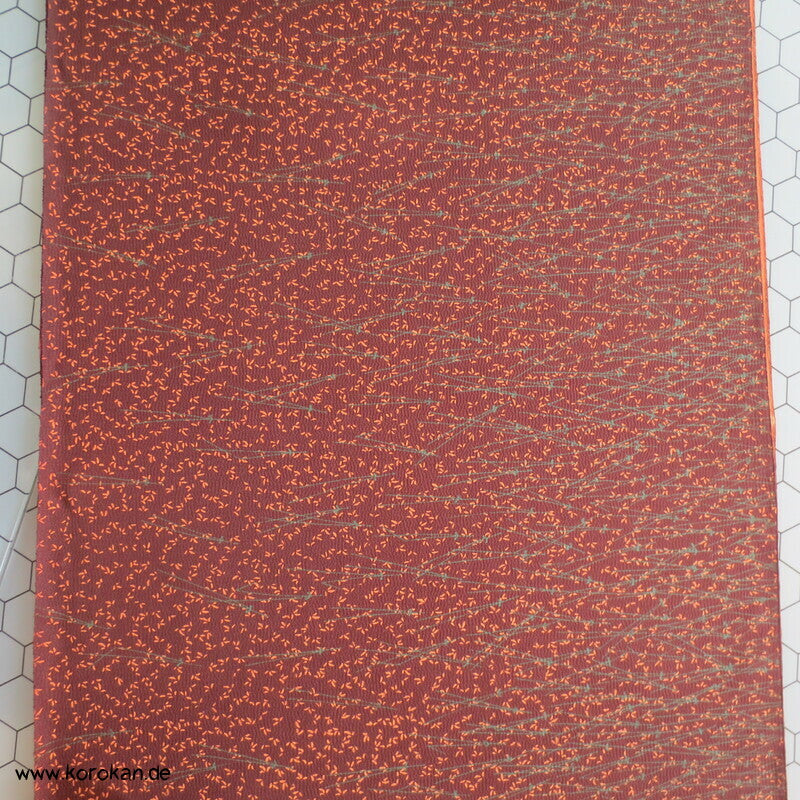 Vintage unbenutzte Tanmono Stoffrolle Seidencrepe mit fast Edo Komon Druck aus Kiefernnadeln und Miniblättern auf einem warmen mittelbraun