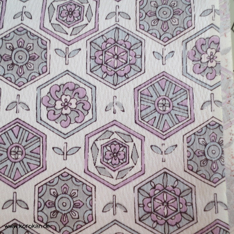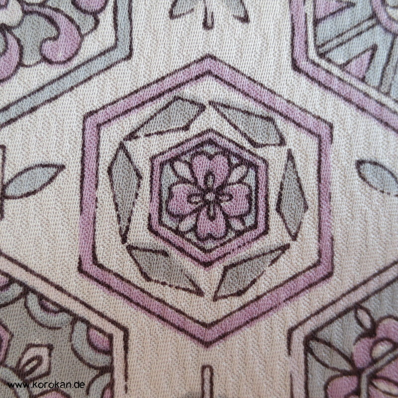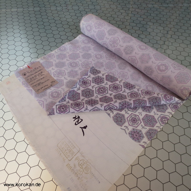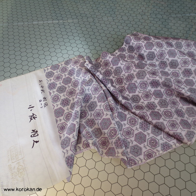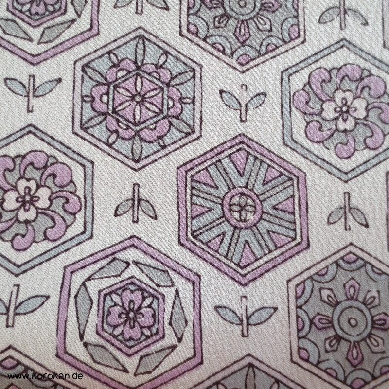 japanischer Vintage unbenutzter Kimono Seidencrepesatin natur Basis mit diagonalem Bokashi Musterkikko in mauve